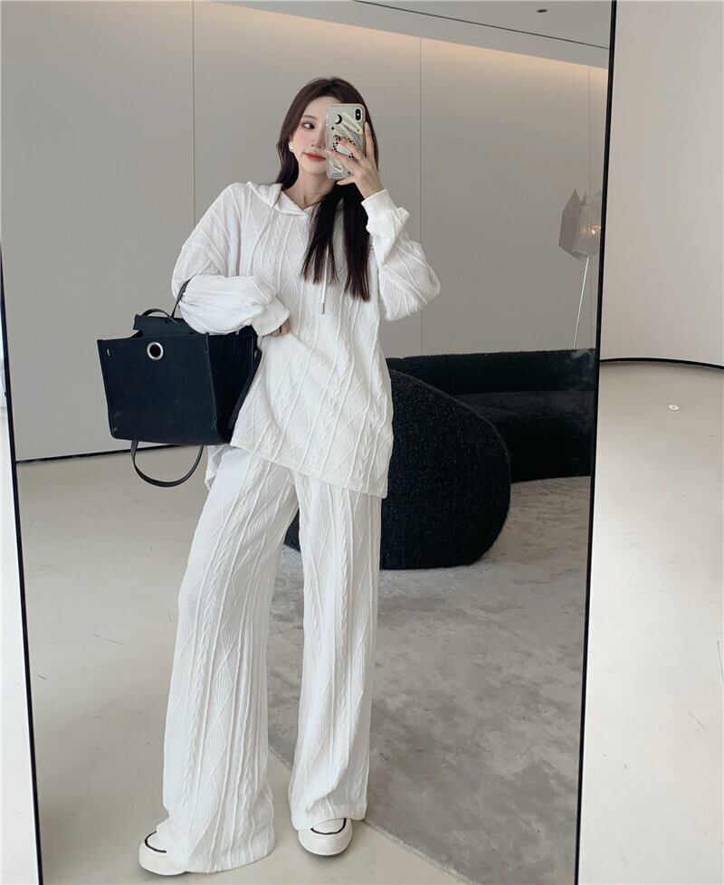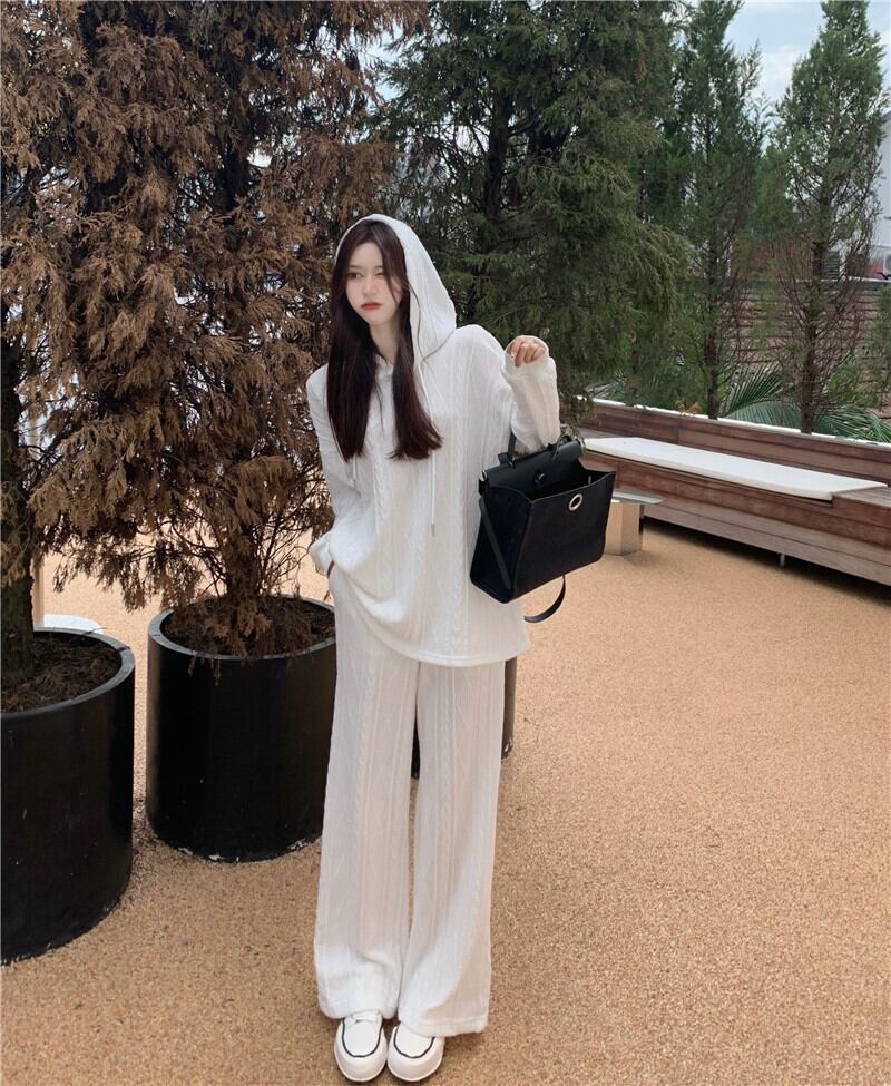 ルーズニットフードトップス ワイドレッグパンツ レッド ワイドパンツ Xiaofeijia3934982532