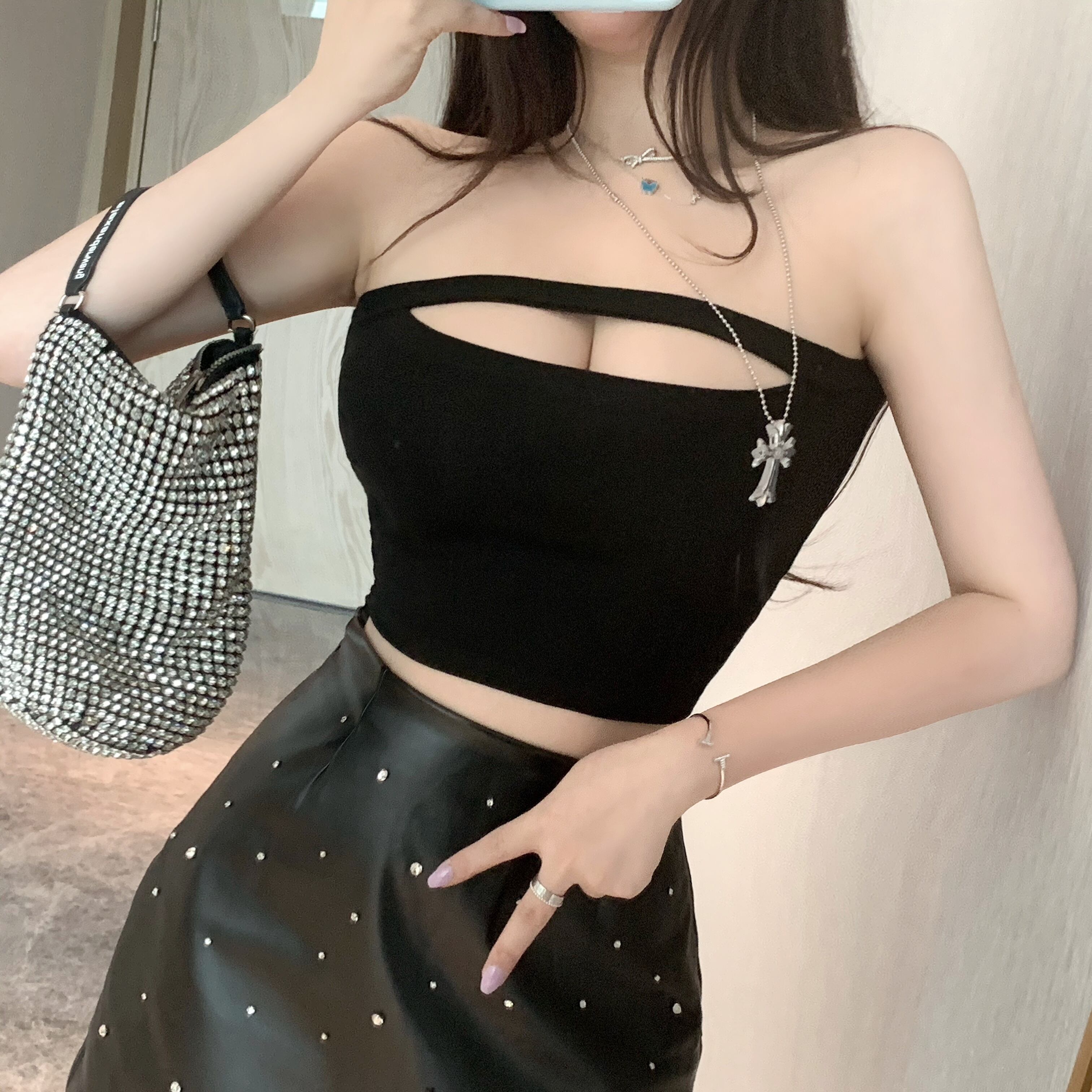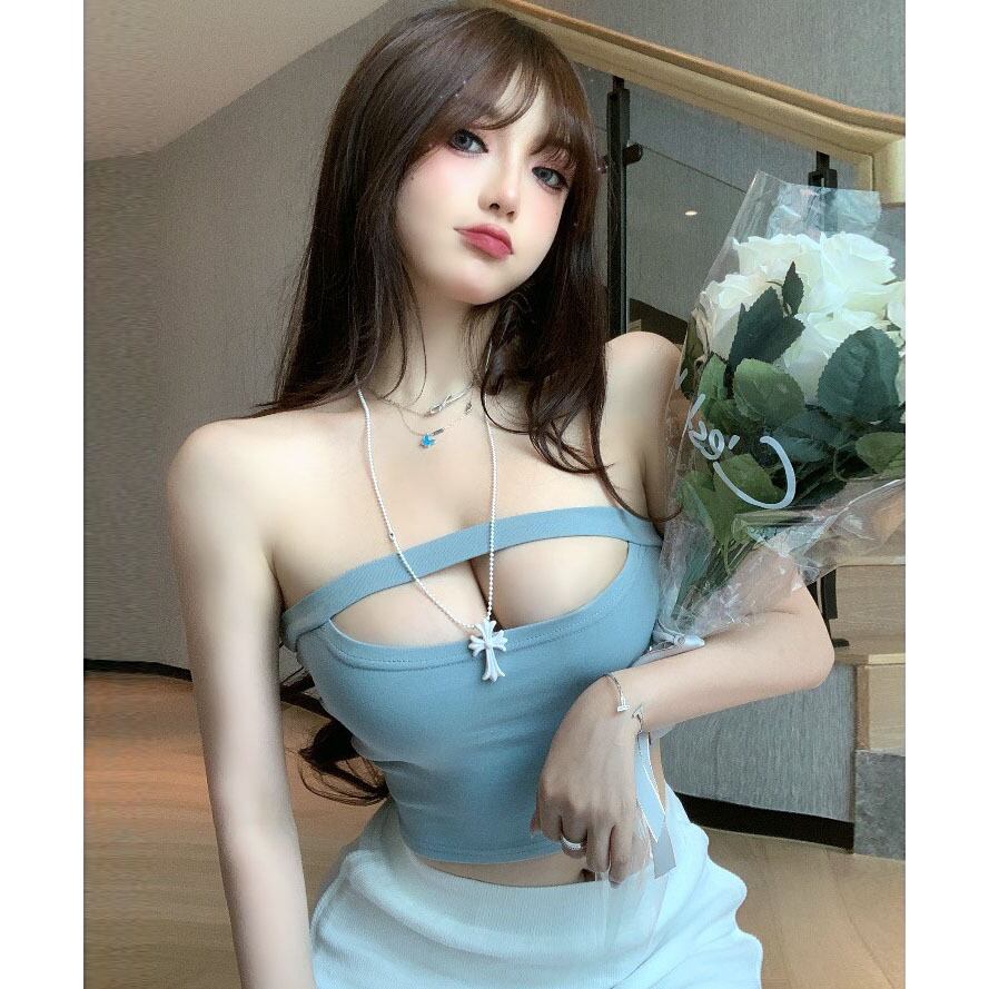 ソリッド カラートップス サマーストラップレスショートレディース 夏物 ソリッドカラー Xiaofeijia22010623609
