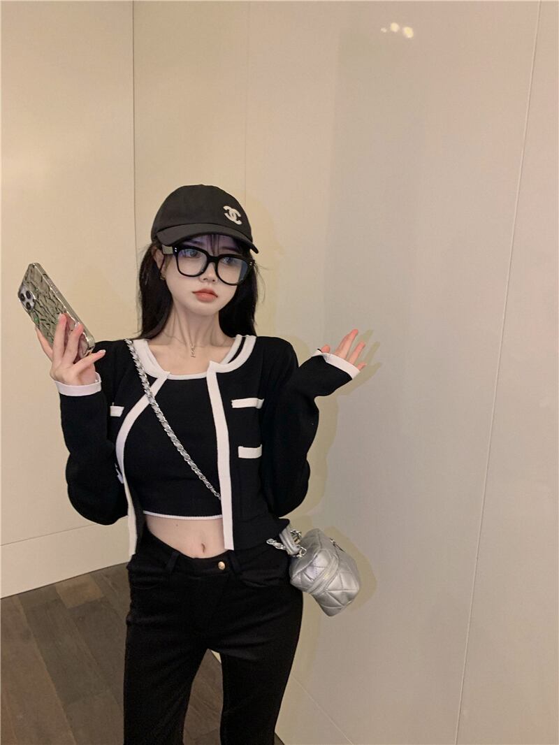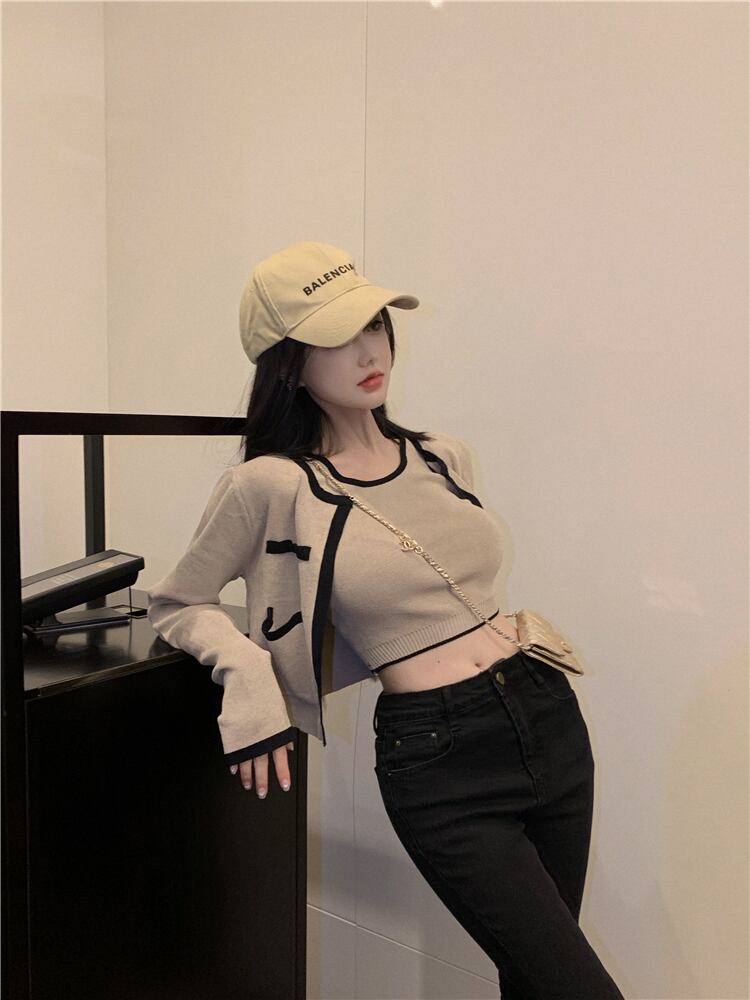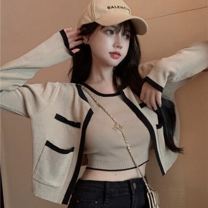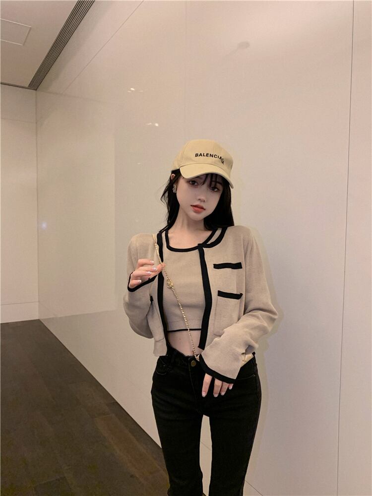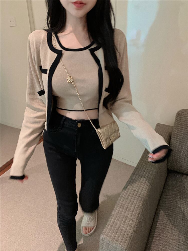 カラーニットカーディガンジャケット オータムショート ロング 秋物 Xiaofeijia1404286406