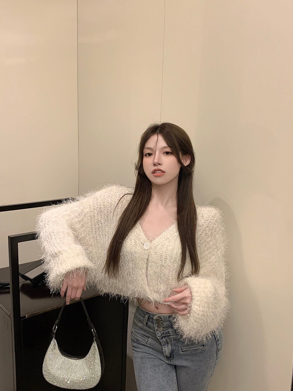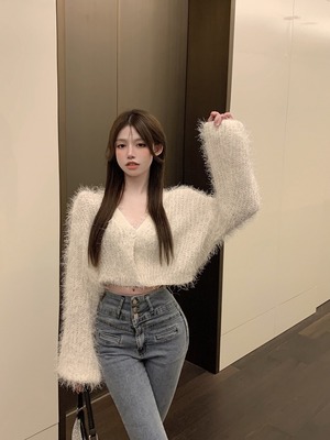 ウールコート カーディガンオータムショートルーズニットトップス ロング 秋物 Xiaofeijia79755166299