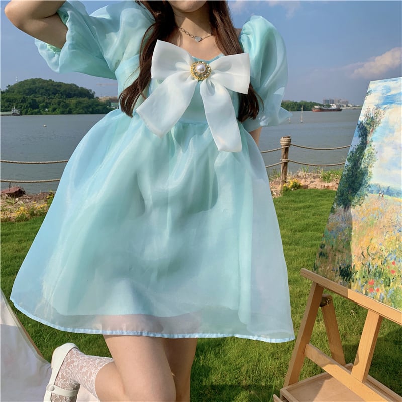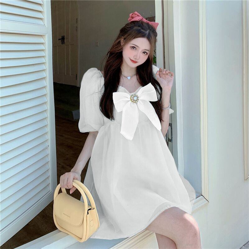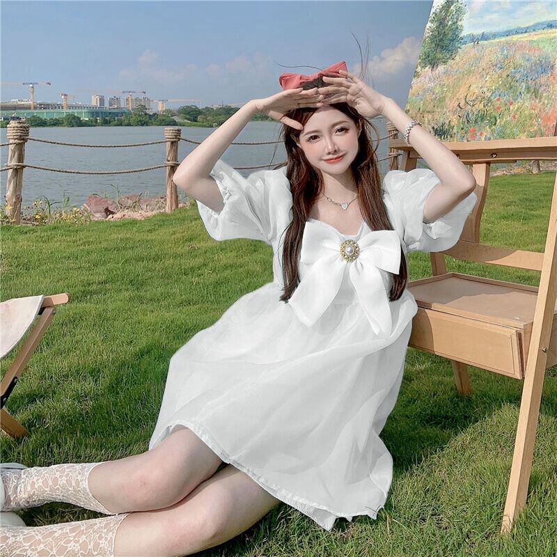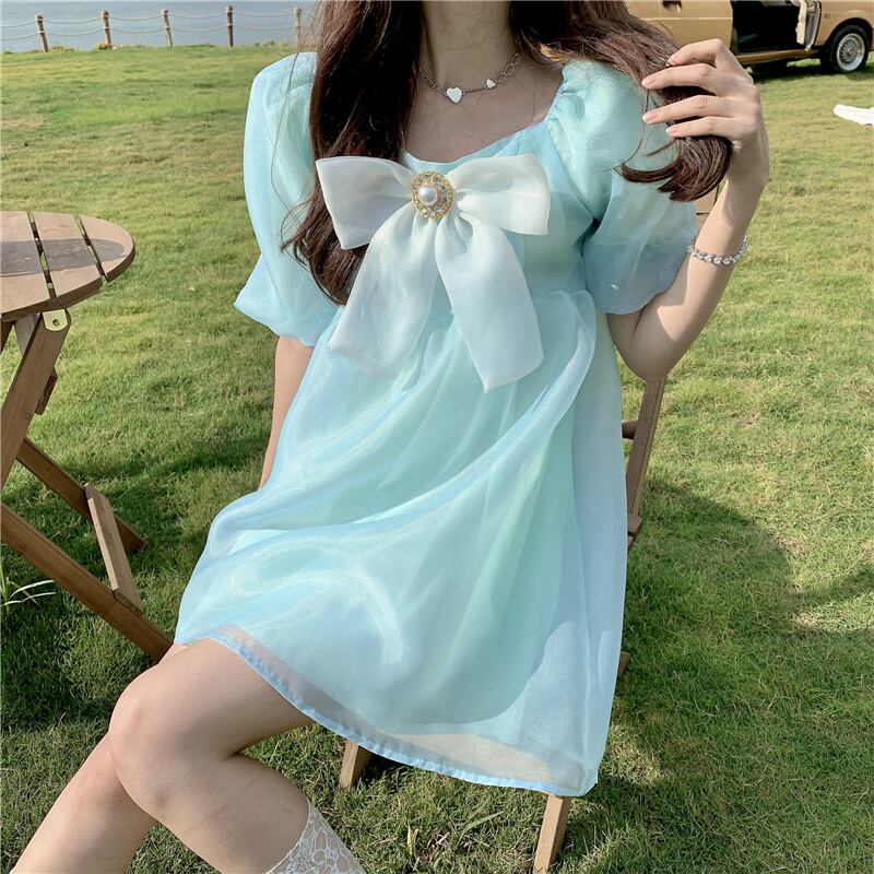 ドレス サマースカート リボンスリーブ 大人ガーリー スウィート キュート カジュアル 夏物 Xiaofeijia42083250030