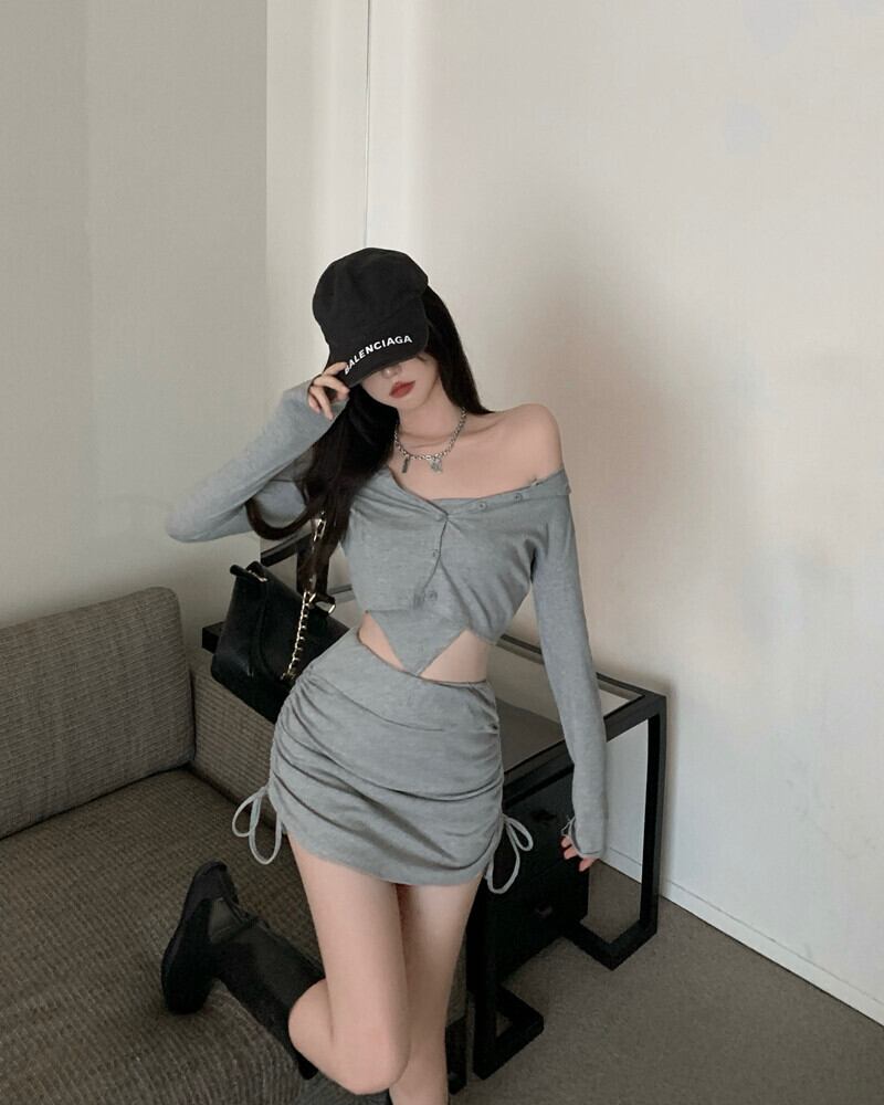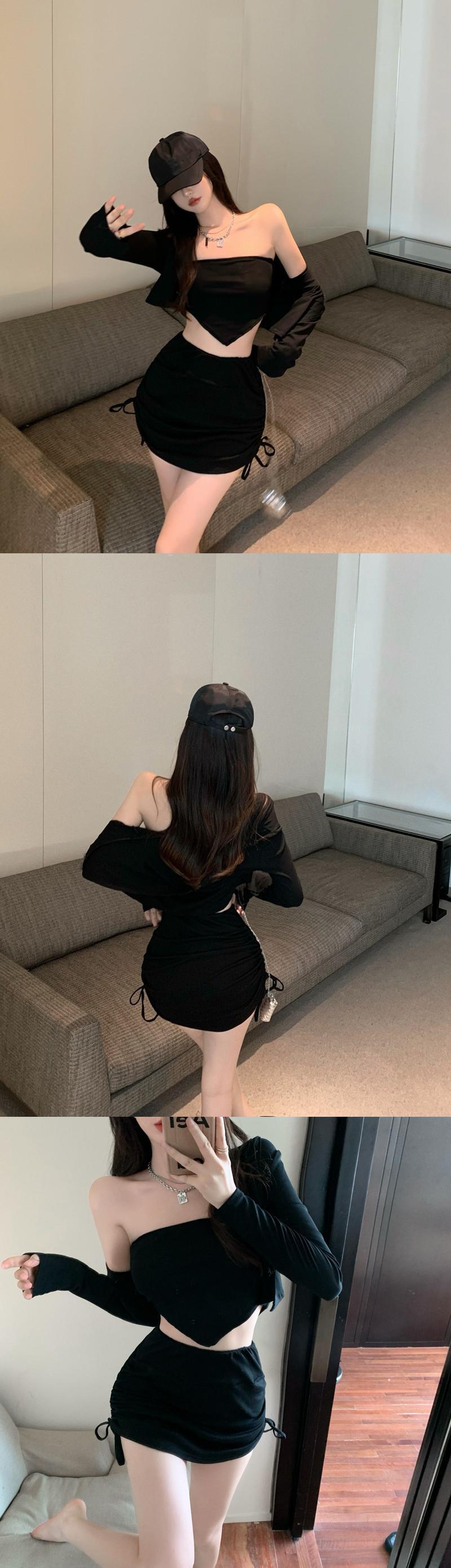 スタイルオータムショートフードジャケット トライアングルスカーフ トップス プリーツスカート 秋物 Xiaofeijia49108814676