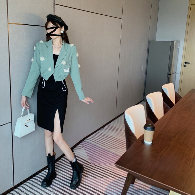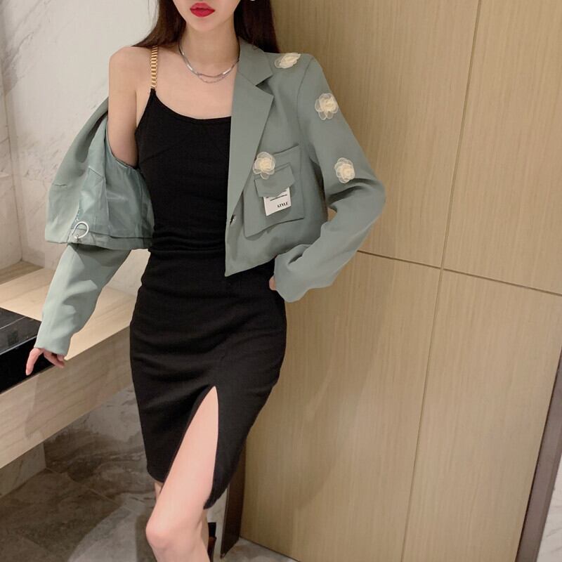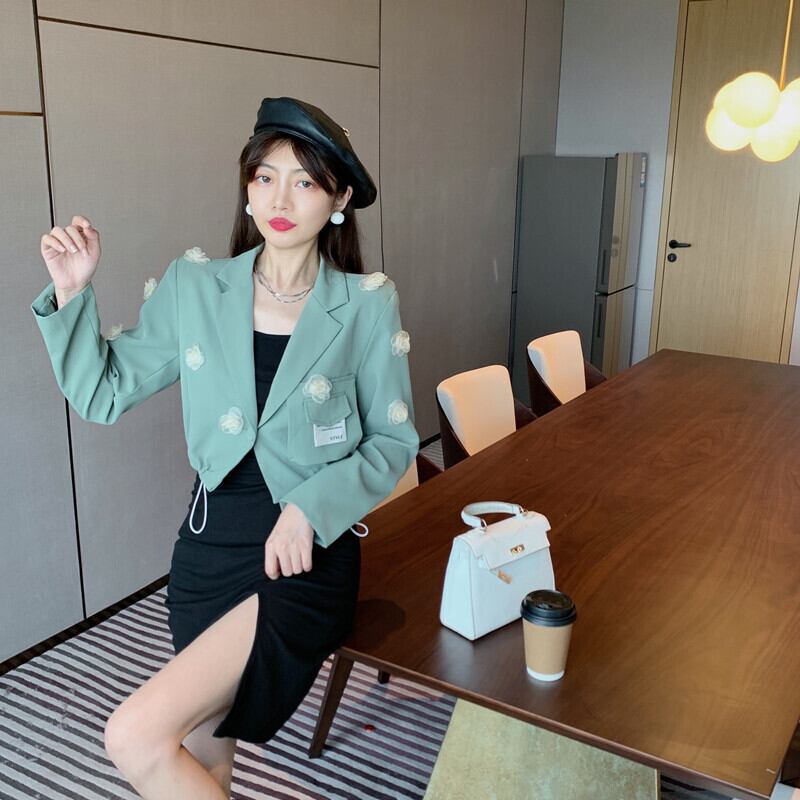 メタルスカート スリットFlowerデザイン カーディガンジャケット オータム 秋物 フラワーデザイン Xiaofeijia29349081376