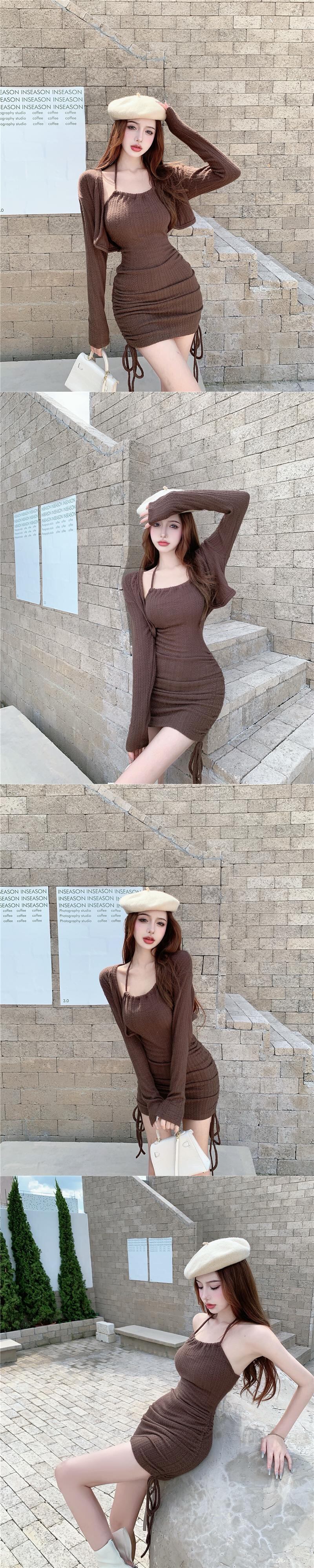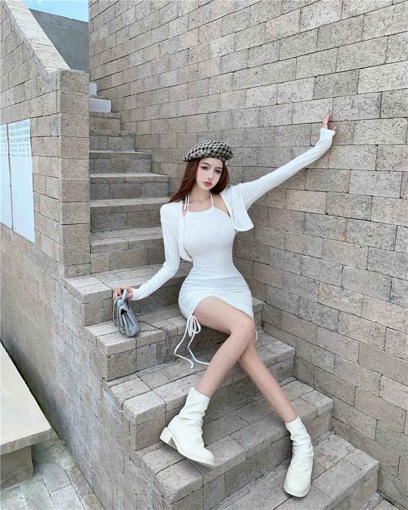 ギャザーホルタードレス レディースオータムスリムニットスカート 秋物 Xiaofeijia36507620760