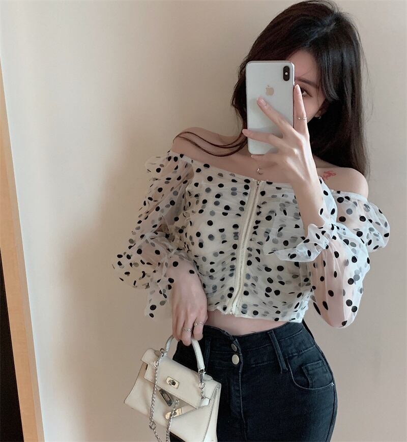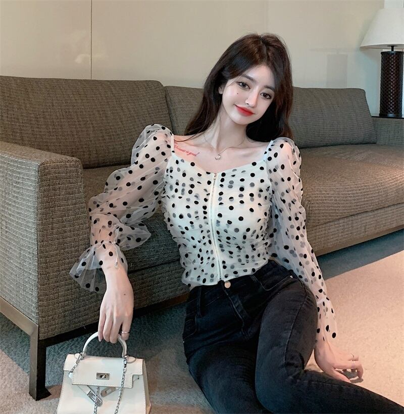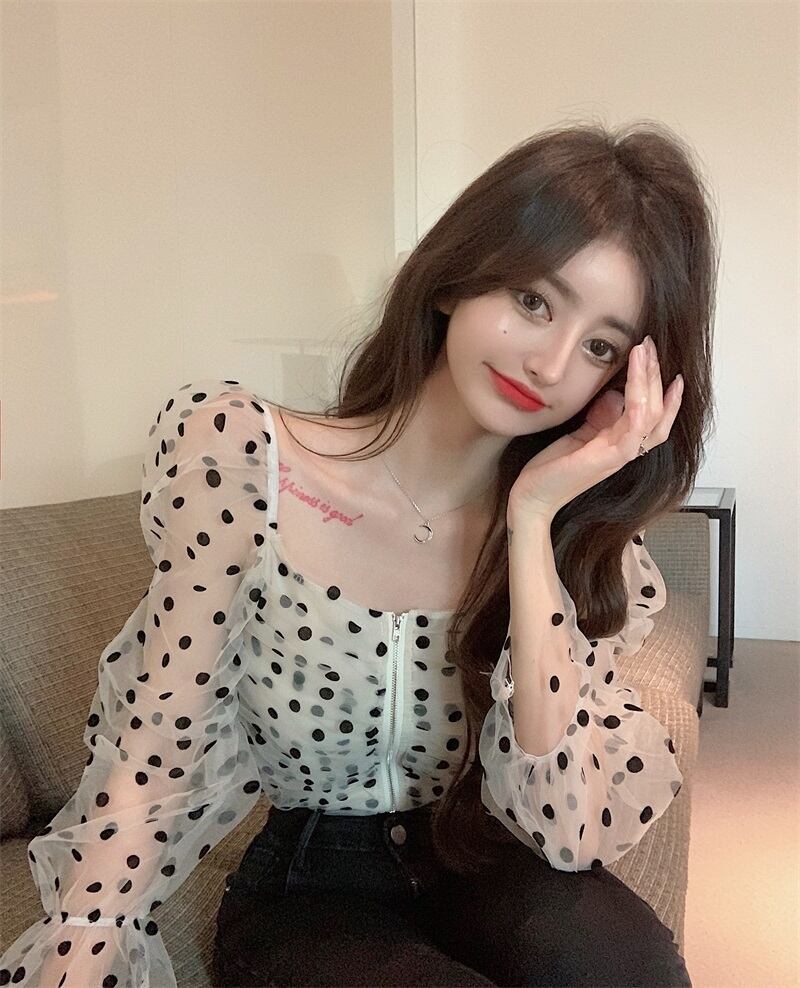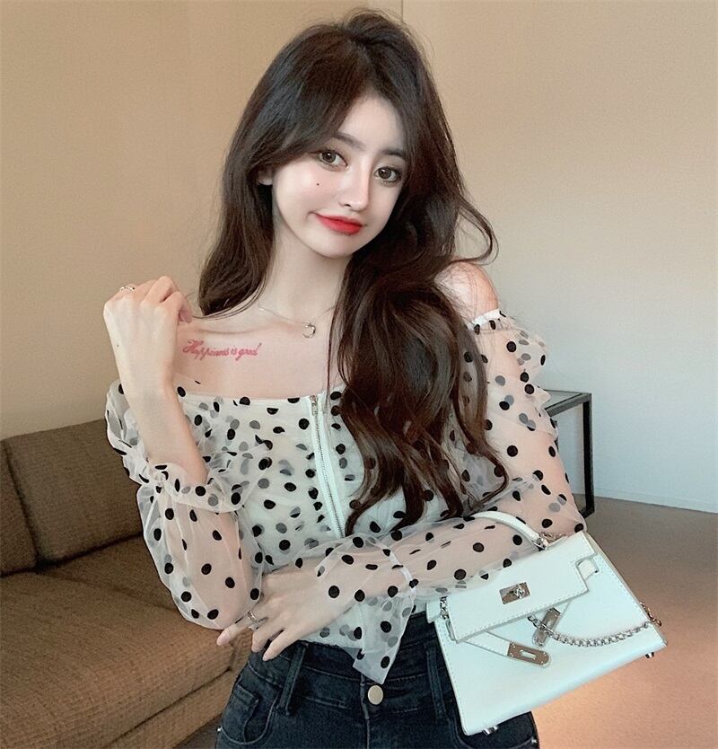 カラー薄手メッシュシャツ ショートトップス ロング スクウェア Xiaofeijia85033730525