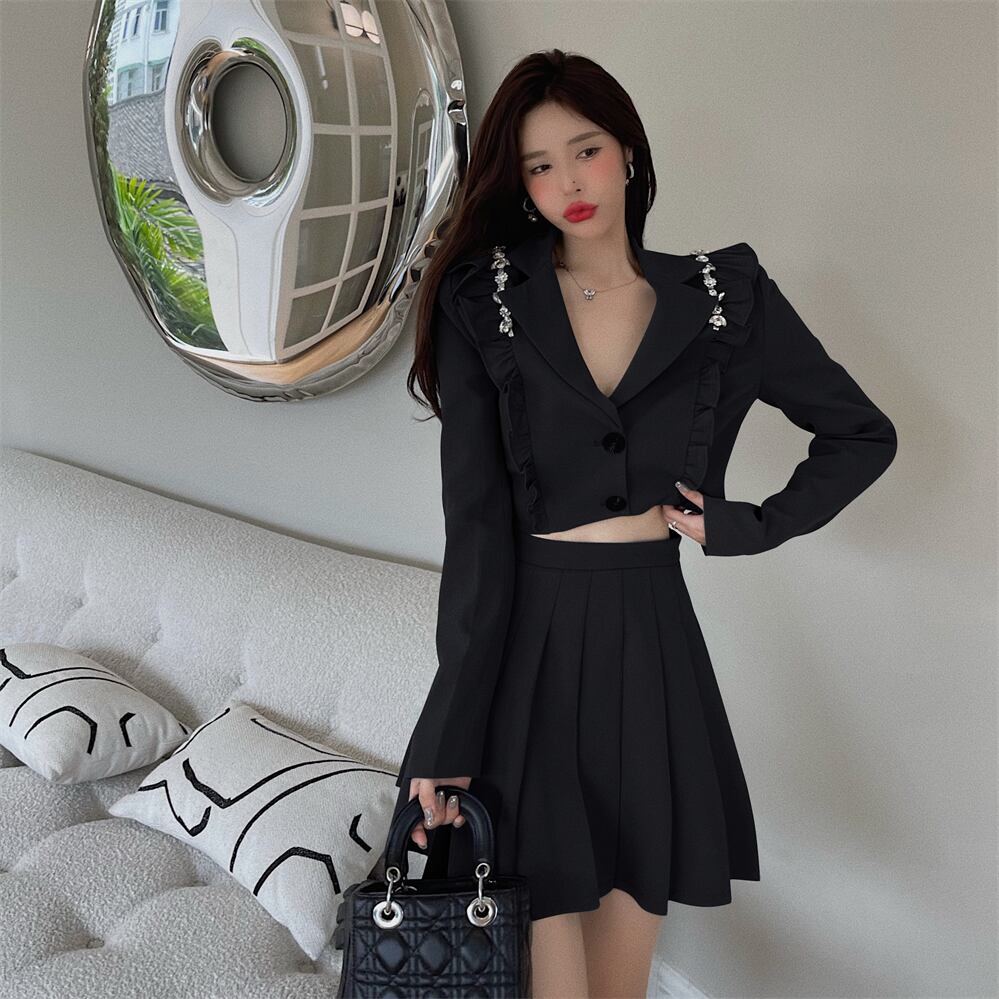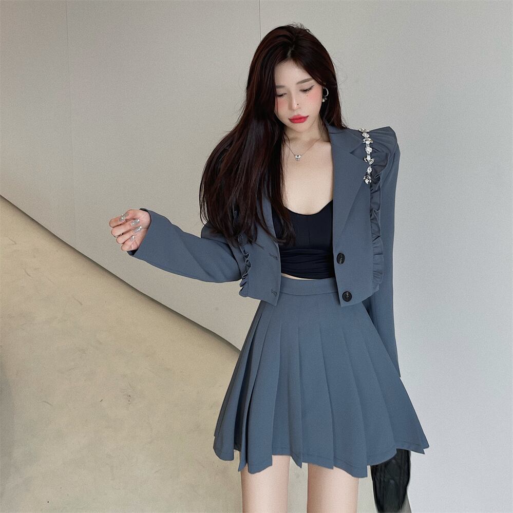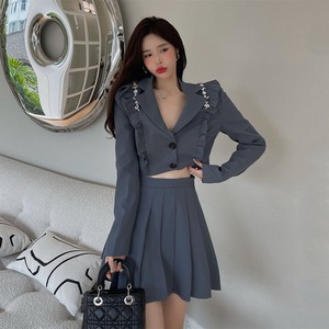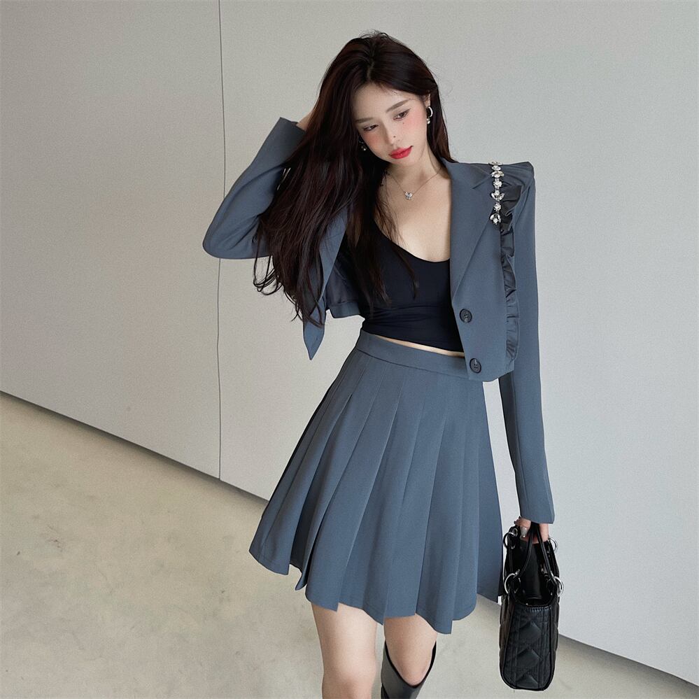 色:グレーのスーツ,黒いスーツ,グレープリーツスカート,ブラックプリーツスカート