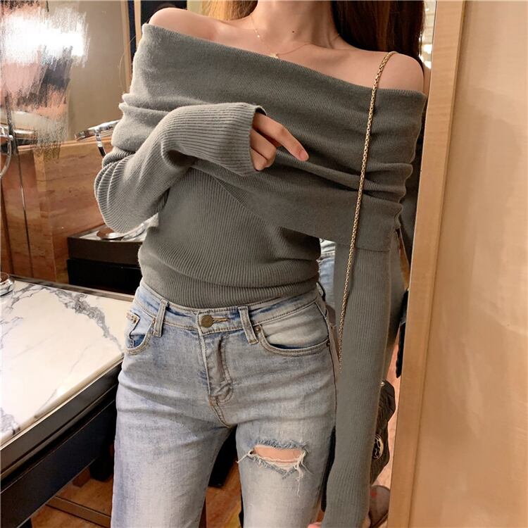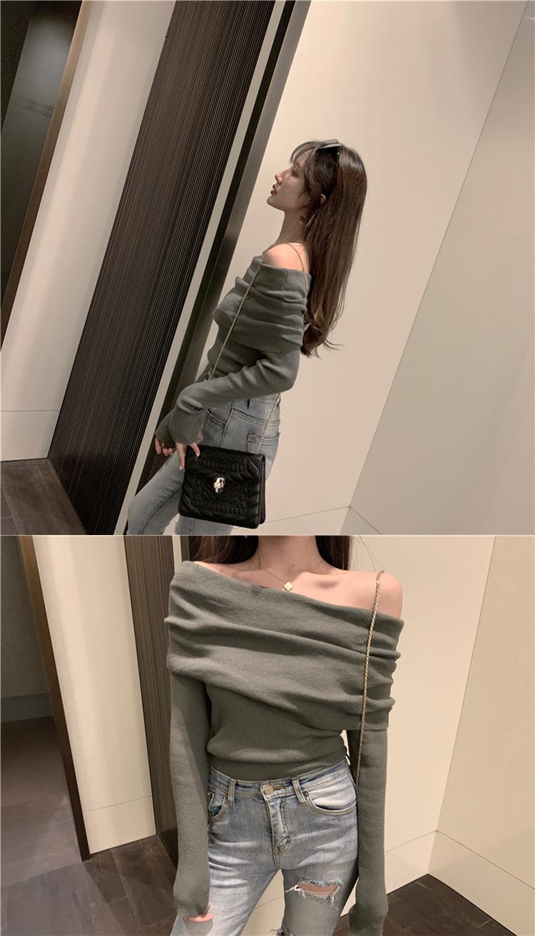 オータムウィンタースタイルショートホルターセーター スタンダードホワイトレッドニットトップス レトロ 秋物 冬物 Xiaofeijia94768060525