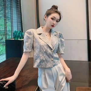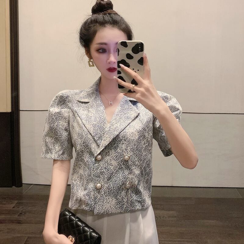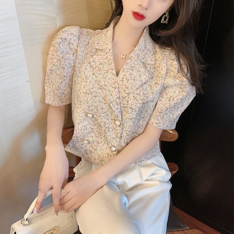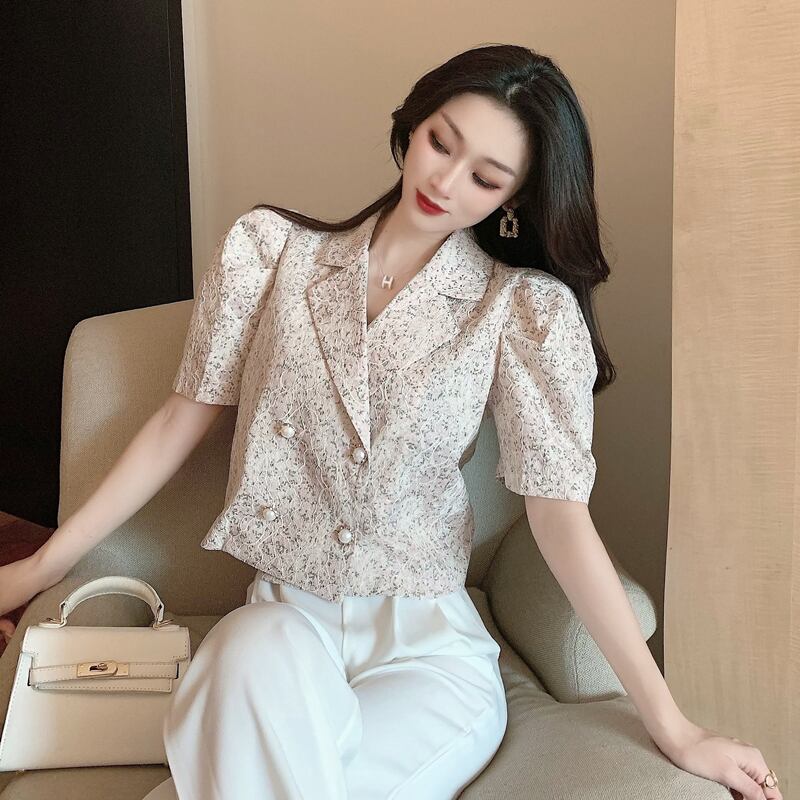 スタンダードフローラルカラースリーブショートカーディガンダブルブレストレースジャケット サマードレス レトロ 夏物 花柄 Xiaofeijia78156216924