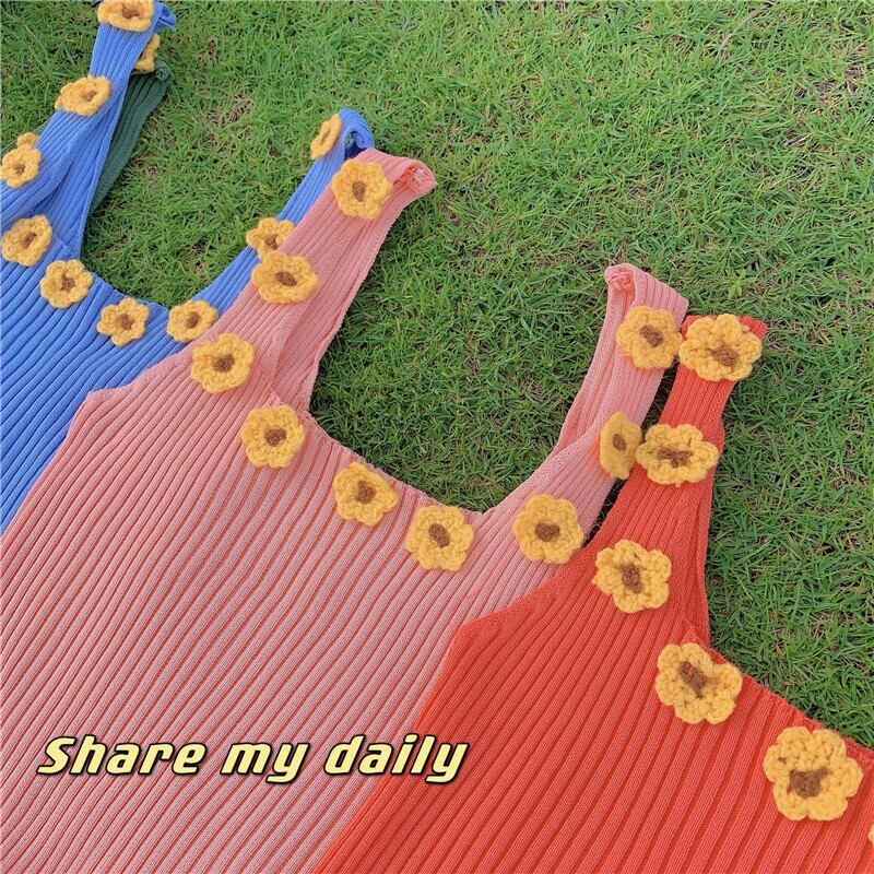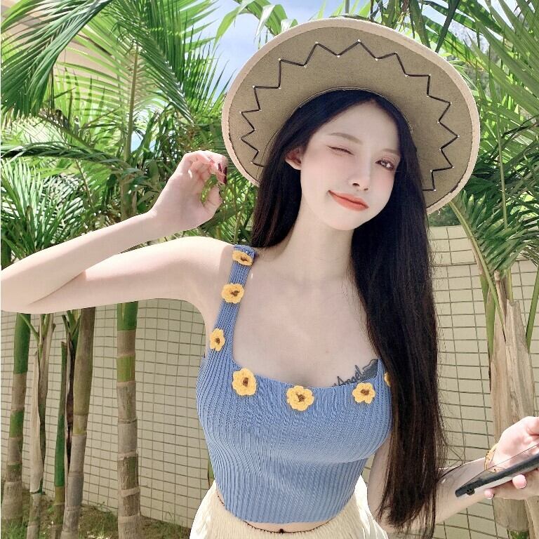 Flowerデザイン ニットサマーバックショートトップス 夏物 フラワーデザイン Xiaofeijia5414354615
