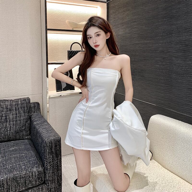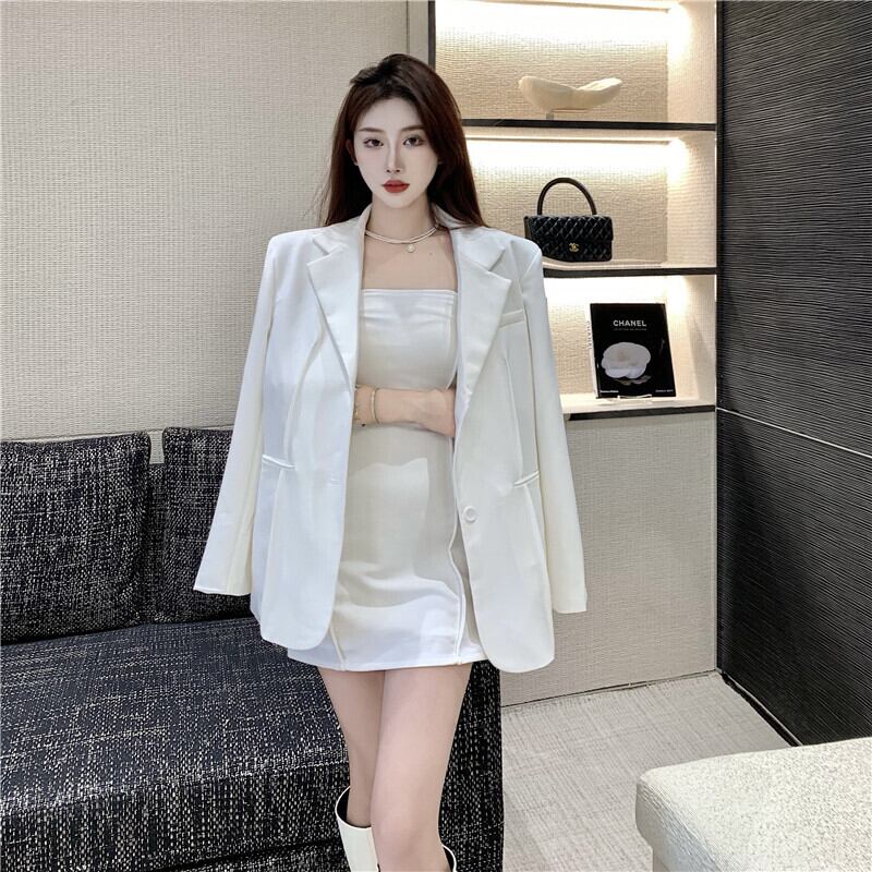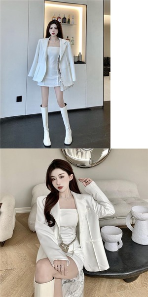 色:白いチューブトップ,白いスーツ,グレーのコーヒーチューブトップ,グレーのコーヒースーツ,黒いチューブトップ,黒いスーツ