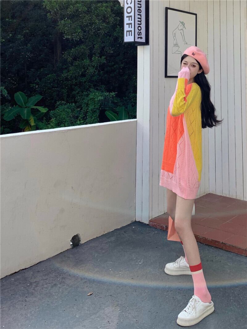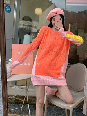 オータムカラーFlowerデザイン ルーズセーター コート 大人ガーリー スウィート キュート カジュアル 秋物 フラワーデザイン Xiaofeijia83438716123