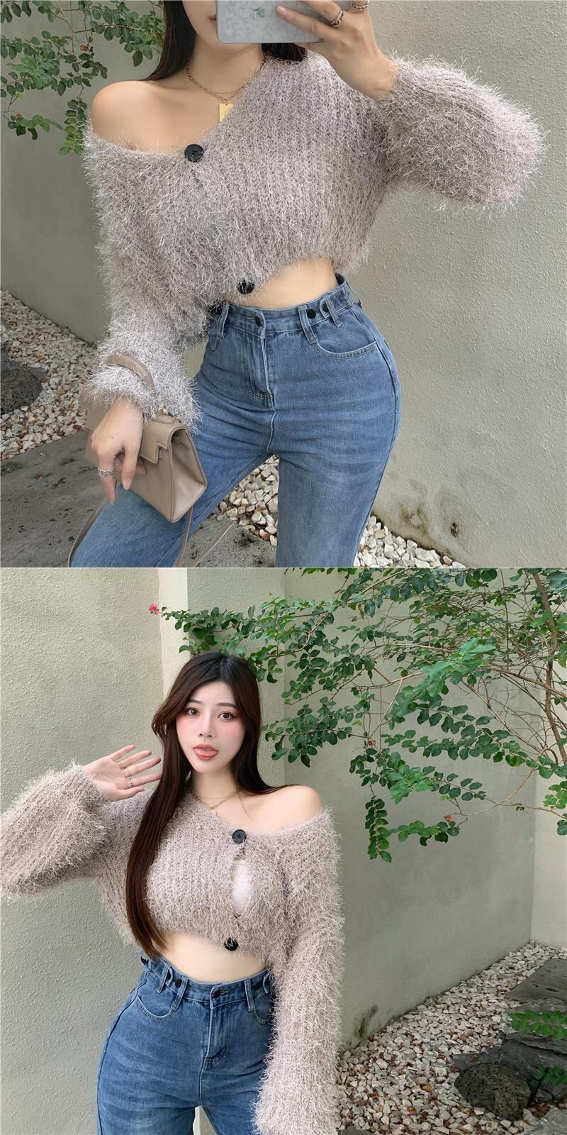 Vネックニットトップス オータムスタイルルーズセーター ジャケット ロング 秋物 Xiaofeijia83987761947
