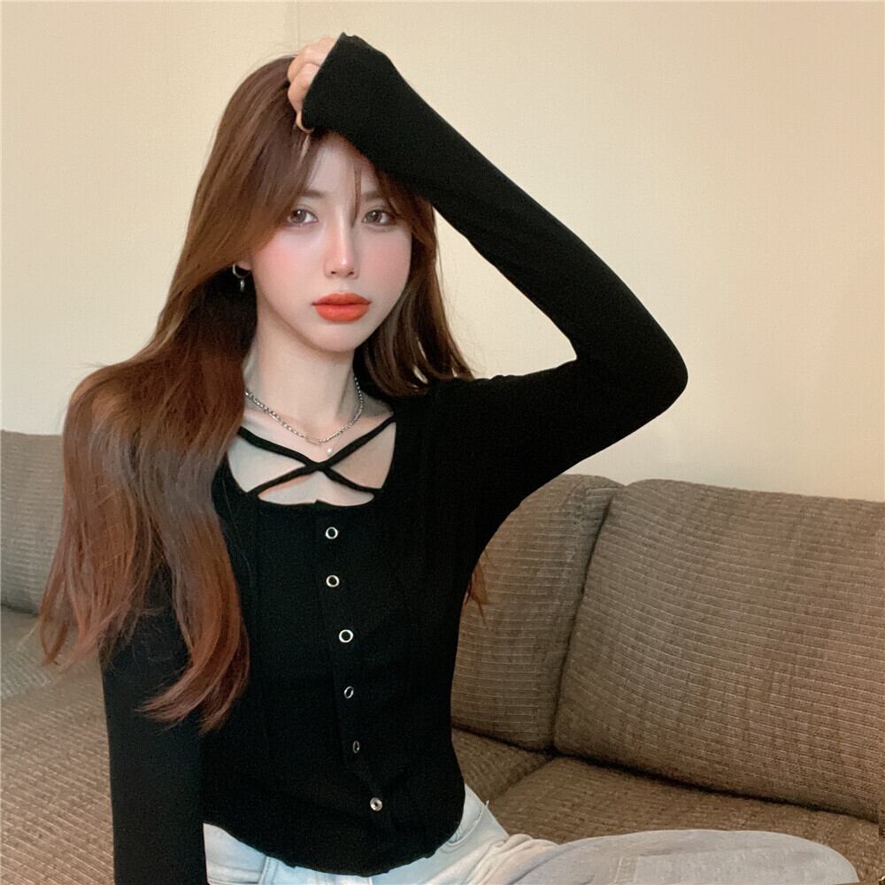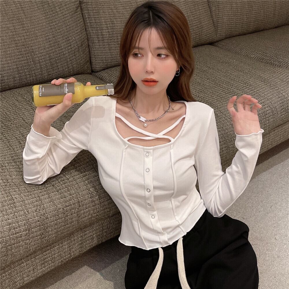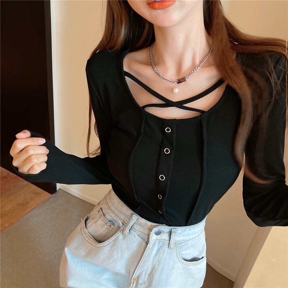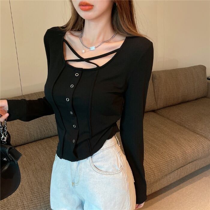 クロスプリーツTシャツ シャツ スリム ロング Xiaofeijia6089862759