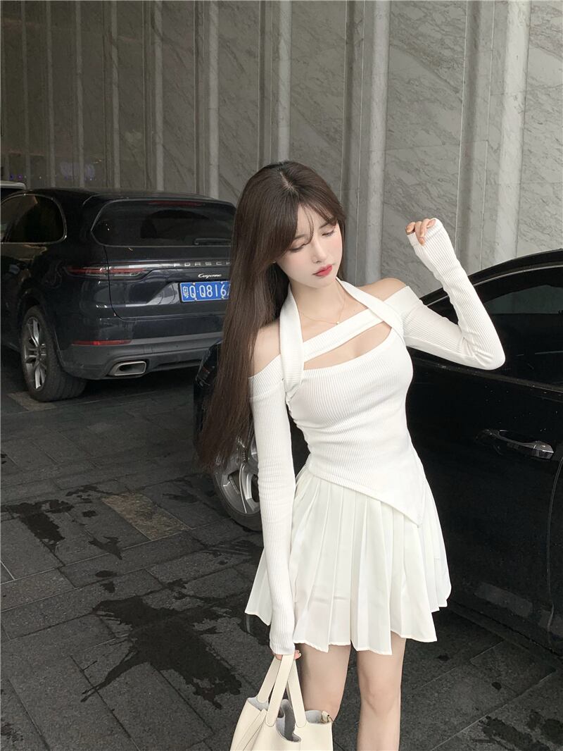 ブラックホワイトストライプホルターロング薄手 長袖 Xiaofeijia58194151722
