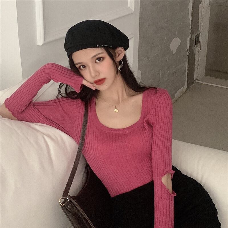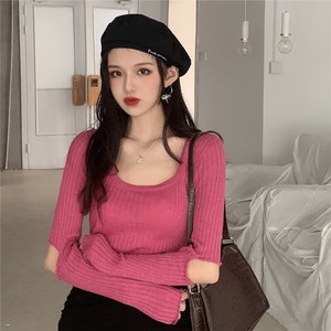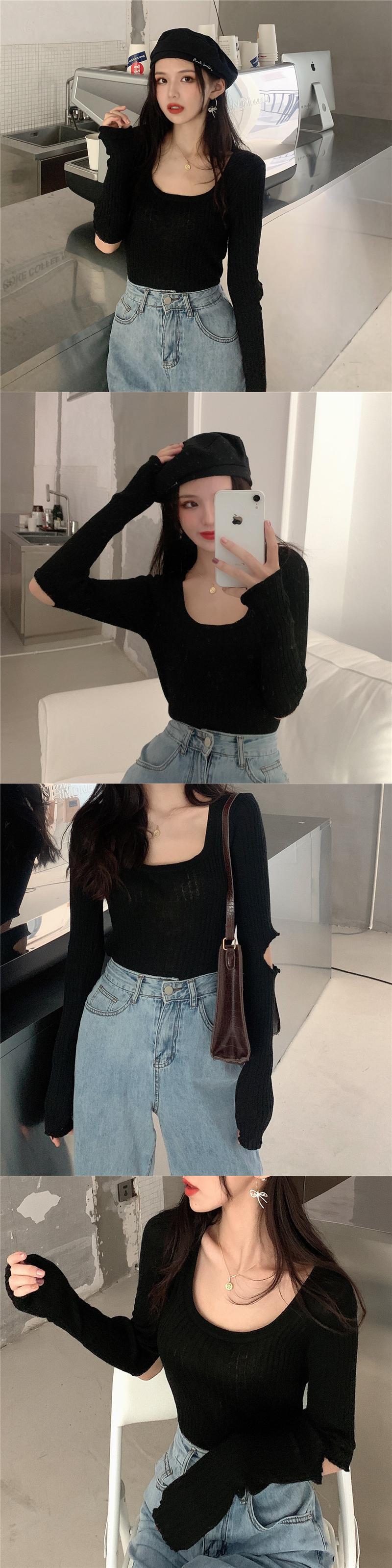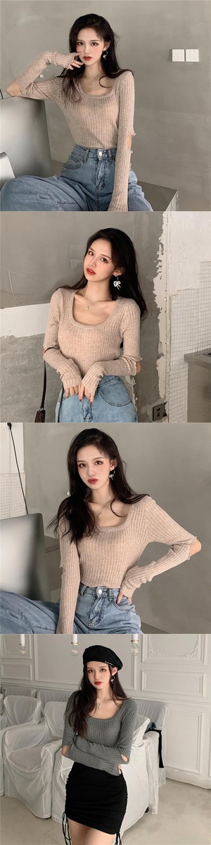 ラウンドネックニットセーター ロング Oネック Xiaofeijia15791271758