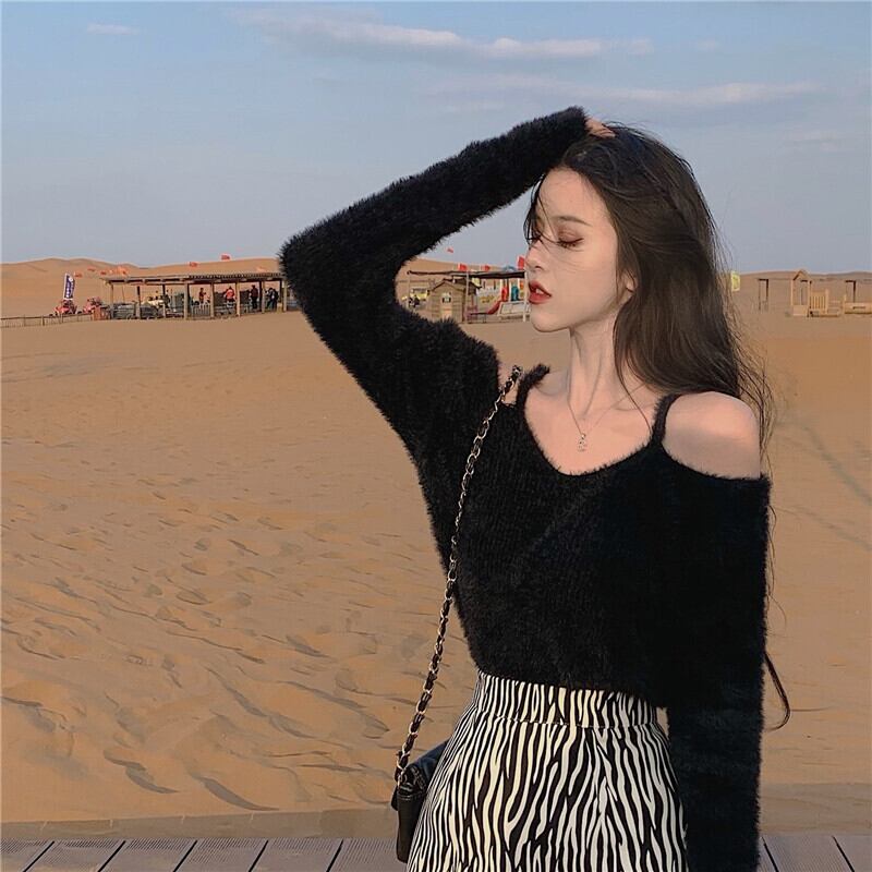 セーター オータムウィンタースリムホワイトトップス ロング 秋物 冬物 Xiaofeijia4449244099