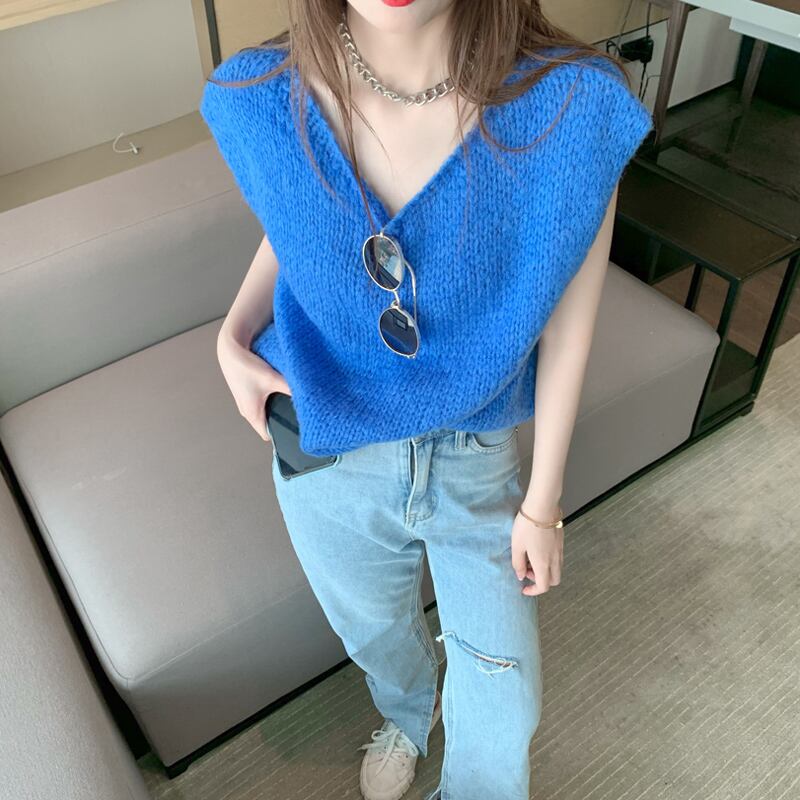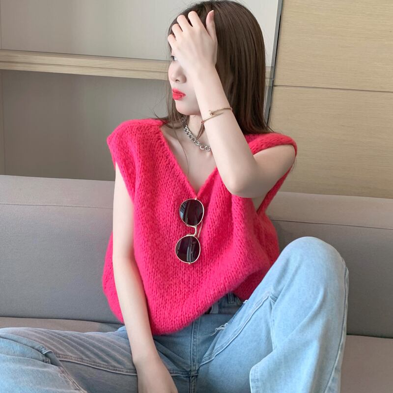 スタイルノースリーブラウンドネックニットレディースオータムウィンタールーズセーター 秋物 冬物 Oネック Xiaofeijia924989405