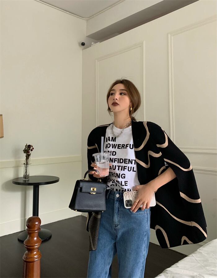 スタンダードスタイルオータムストライプドレス ルーズレディース レトロ 秋物 Xiaofeijia60932581068