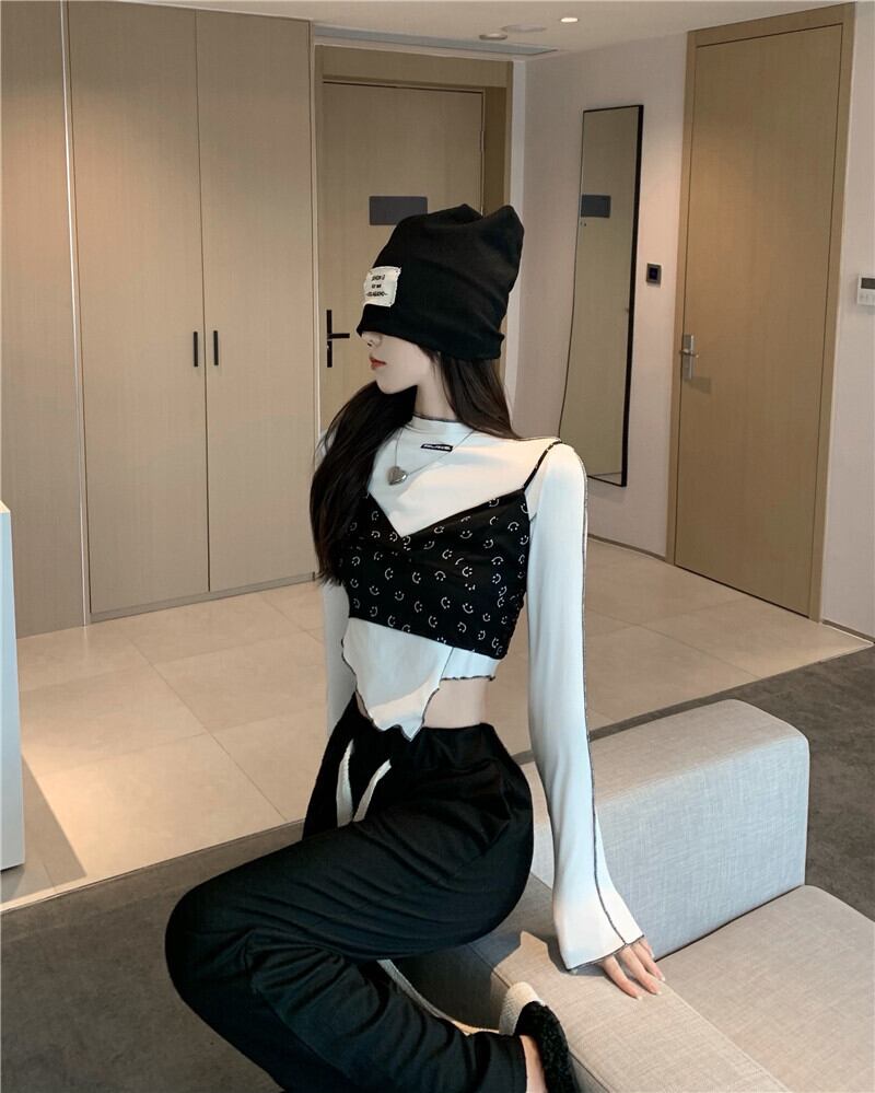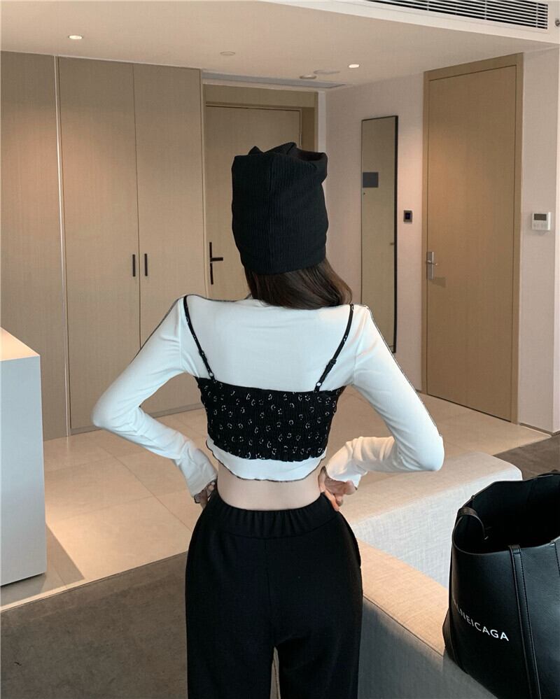 ショートトップス ホルターTシャツ セット パンツ オータム 秋物 Xiaofeijia93163843020