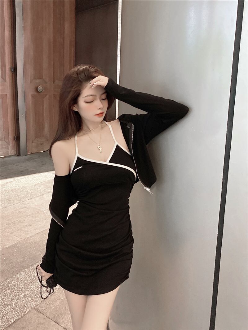 スリムドレス フードカーディガン長袖スリーブセット ロング Xiaofeijia61183593323