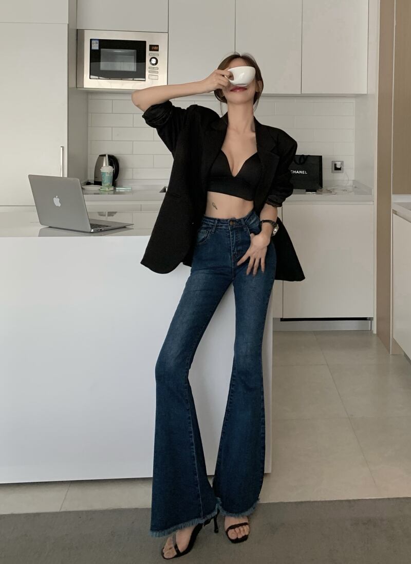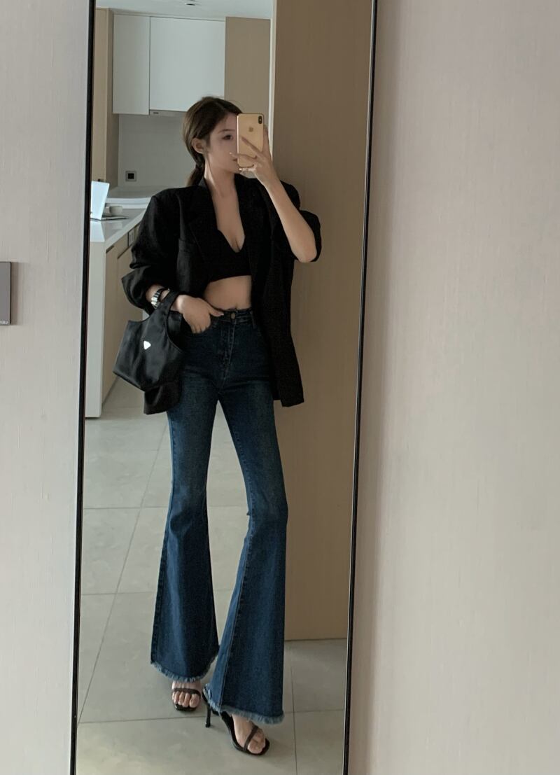 ジーンズ オータムパンツ スタンダードスタイルブルー薄手 レッド レトロ 秋物 Xiaofeijia36314267742