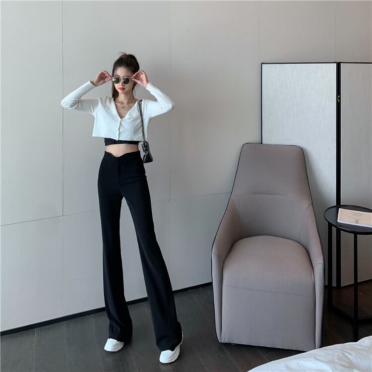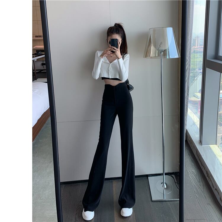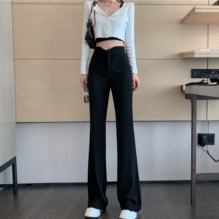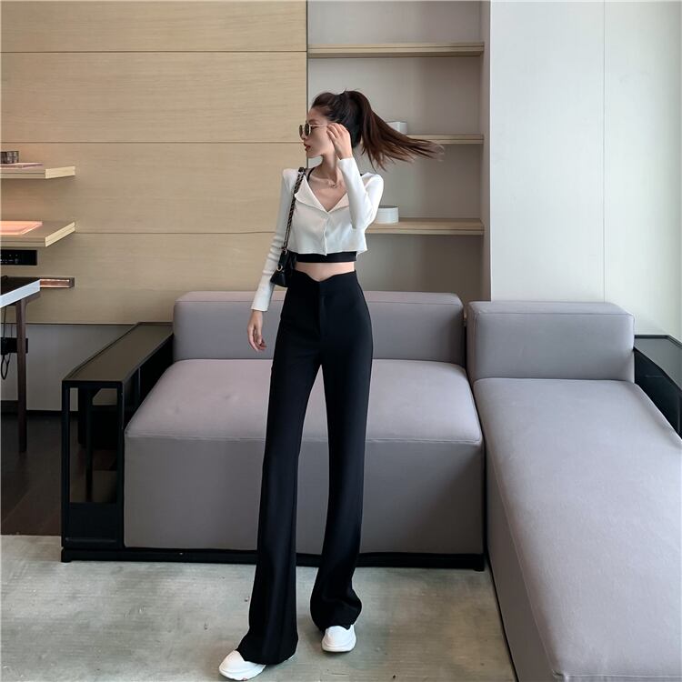 パンツ スプリングオータムブラック薄手ハイウェスト レッド 春物 秋物 Xiaofeijia96807556812