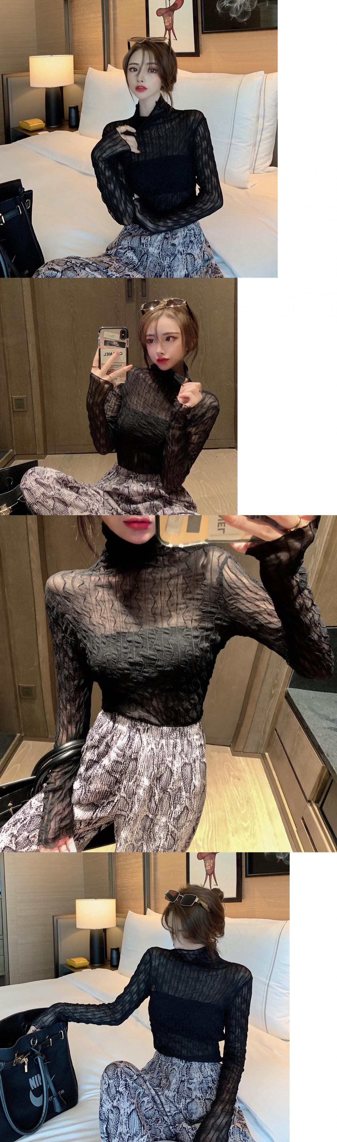 メッシュレースシャツ オータムプリーツ ロング 秋物 Xiaofeijia72247017617