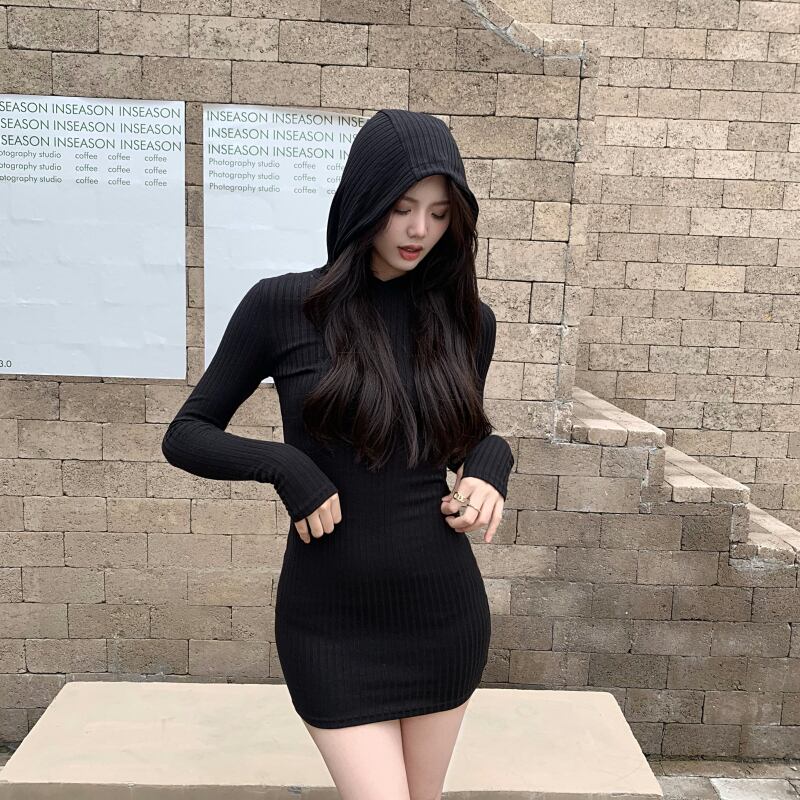 オータムスタイルフードスリムニットドレス 秋物 Xiaofeijia55955094402