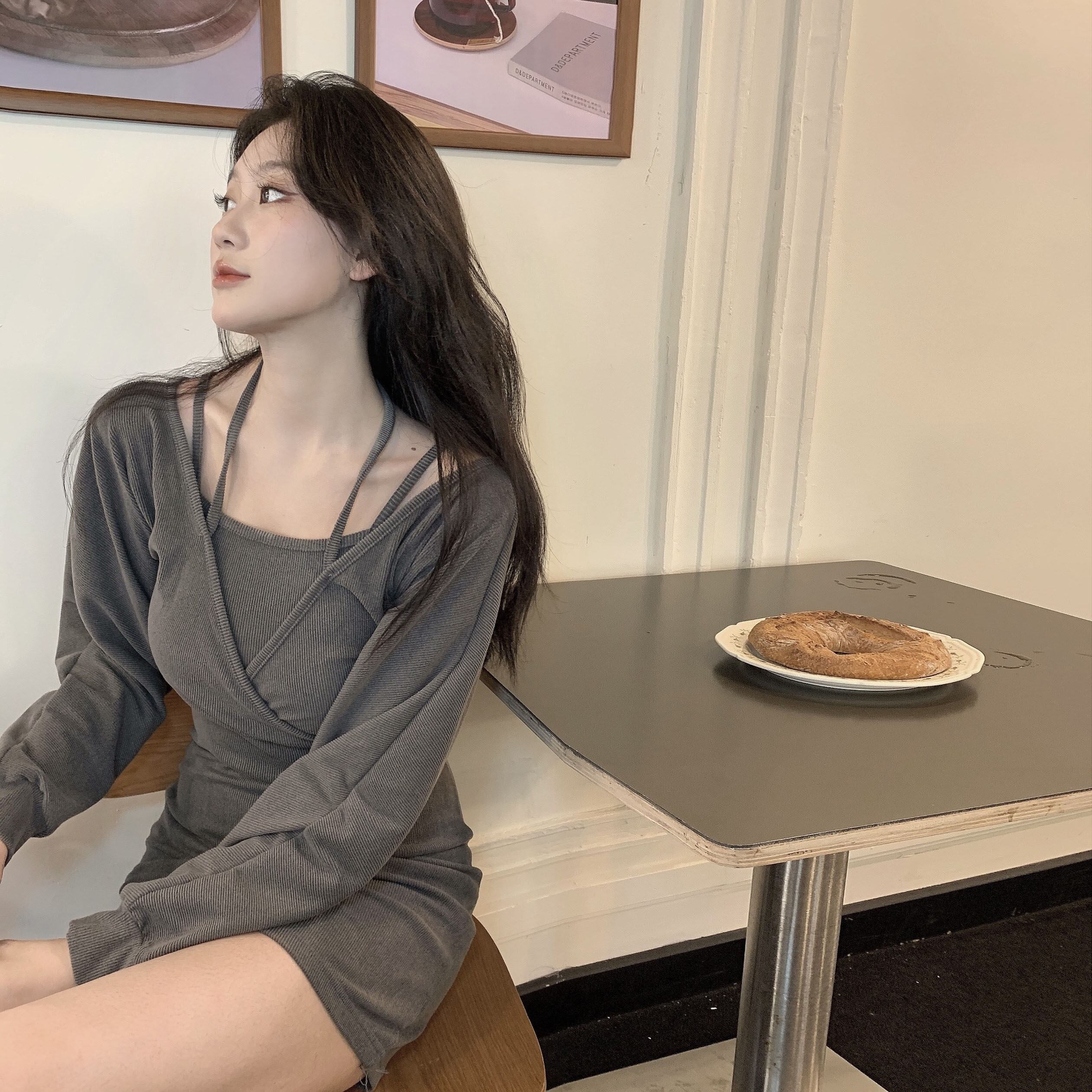 ショートスカート ウェストドレス オータム ロング 秋物 Xiaofeijia77801323033