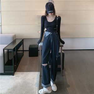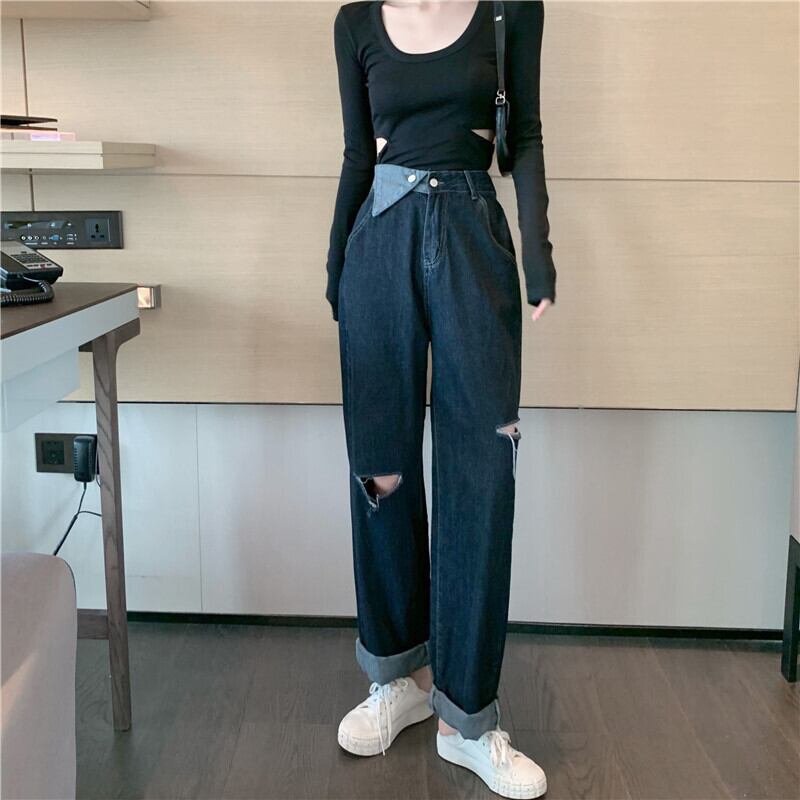 ジーンズ オータムハイウェスト薄手ルーズ 秋物 Xiaofeijia20306471732