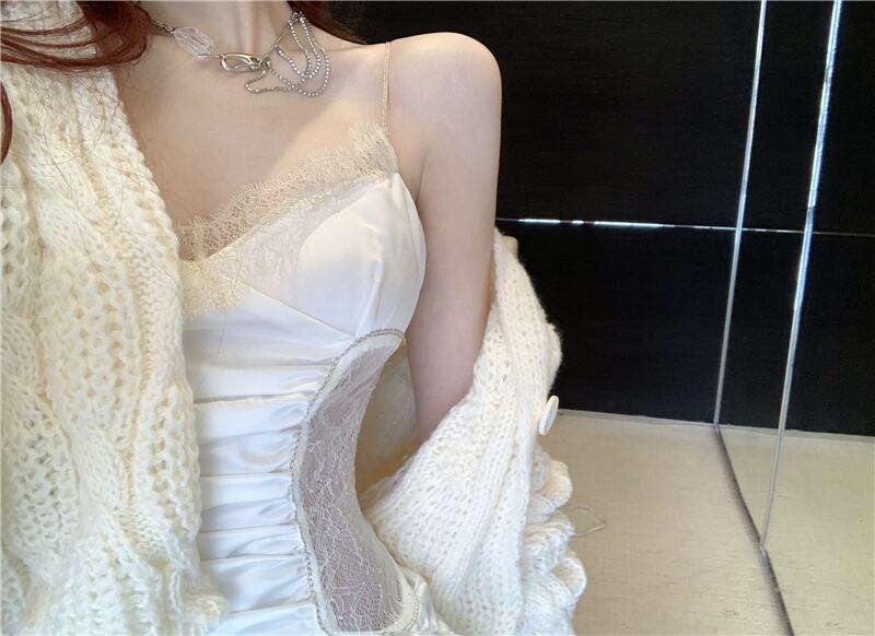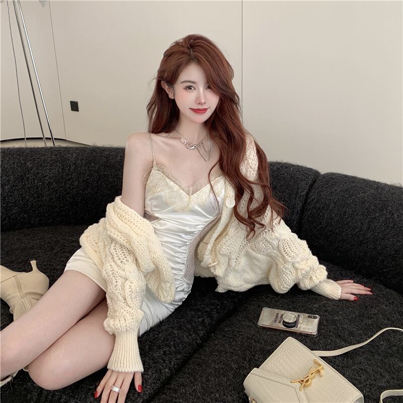 オータムカーディガンセーター レーススカート ショートコート ジャケット ロング 秋物 Xiaofeijia707007469