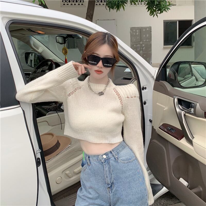 ニット スタンダードホワイトレッドセーター オータムクロップドショート ロング レトロ 秋物 Xiaofeijia95426055250