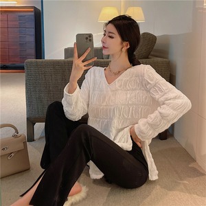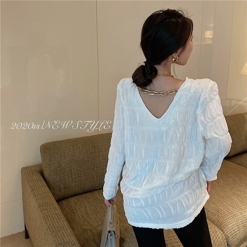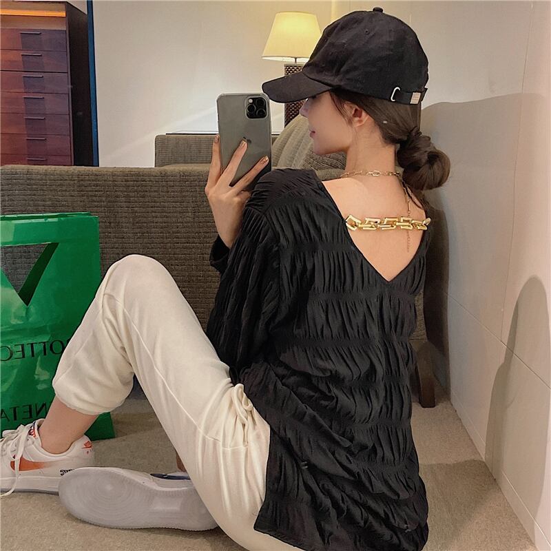 ルーズチェーン VネックTシャツ シャツ ブラウス オータムプリーツ ロング 秋物 Xiaofeijia75927828334