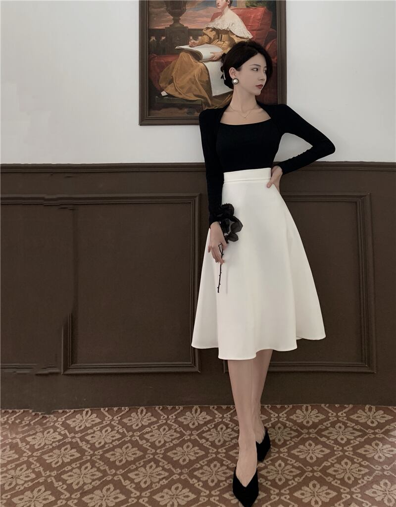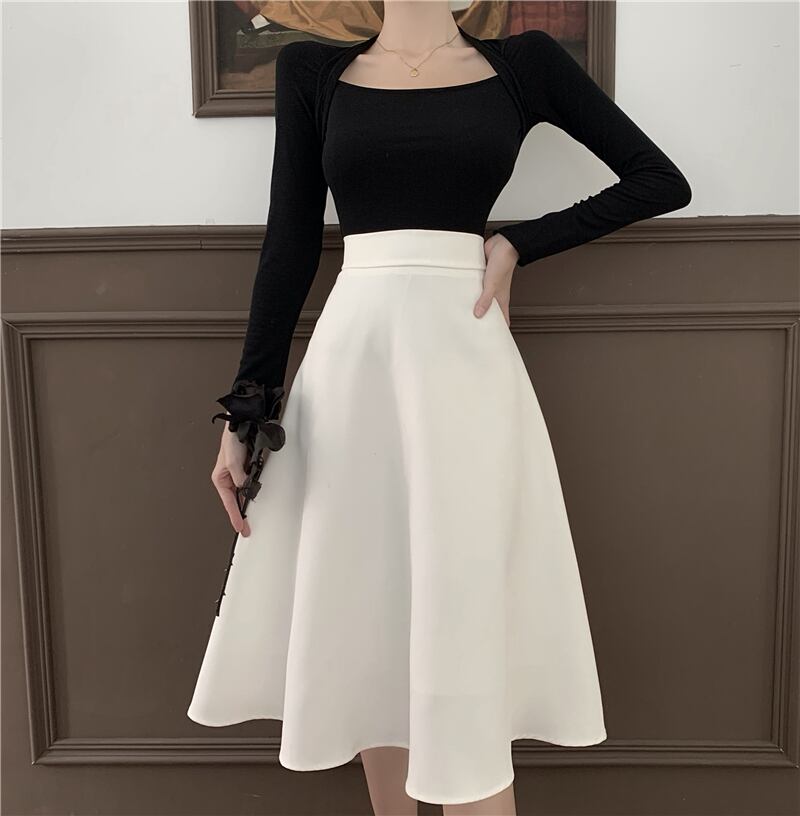 スカート サマーオータムハイウェスト薄手ホワイトAライン 夏物 秋物 Xiaofeijia26119963408