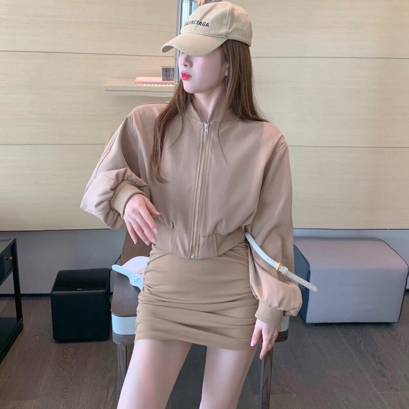 スタンダードカラージャケット ショートオータムカジュアルルーズジッパートップス ロング レトロ 秋物 Xiaofeijia78366411888