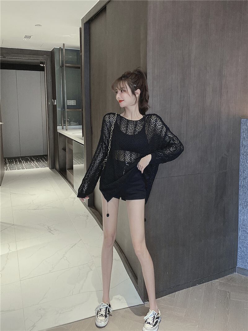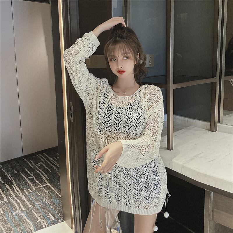 ニットセーター オータム薄手ルーズ ロング ブラウス 秋物 Xiaofeijia68048268222
