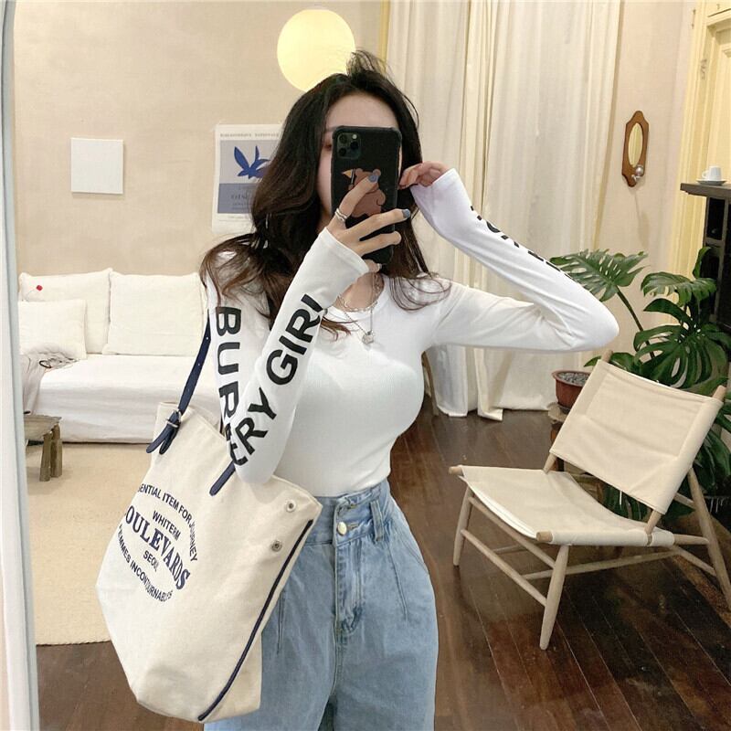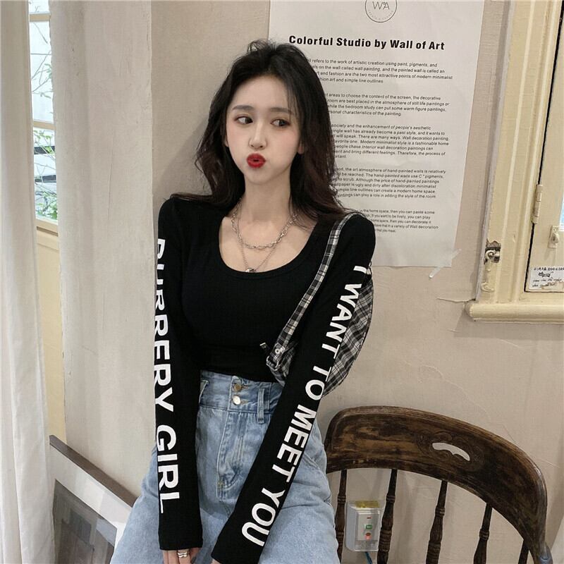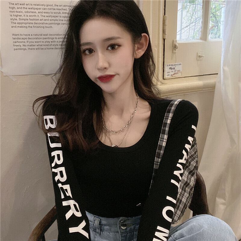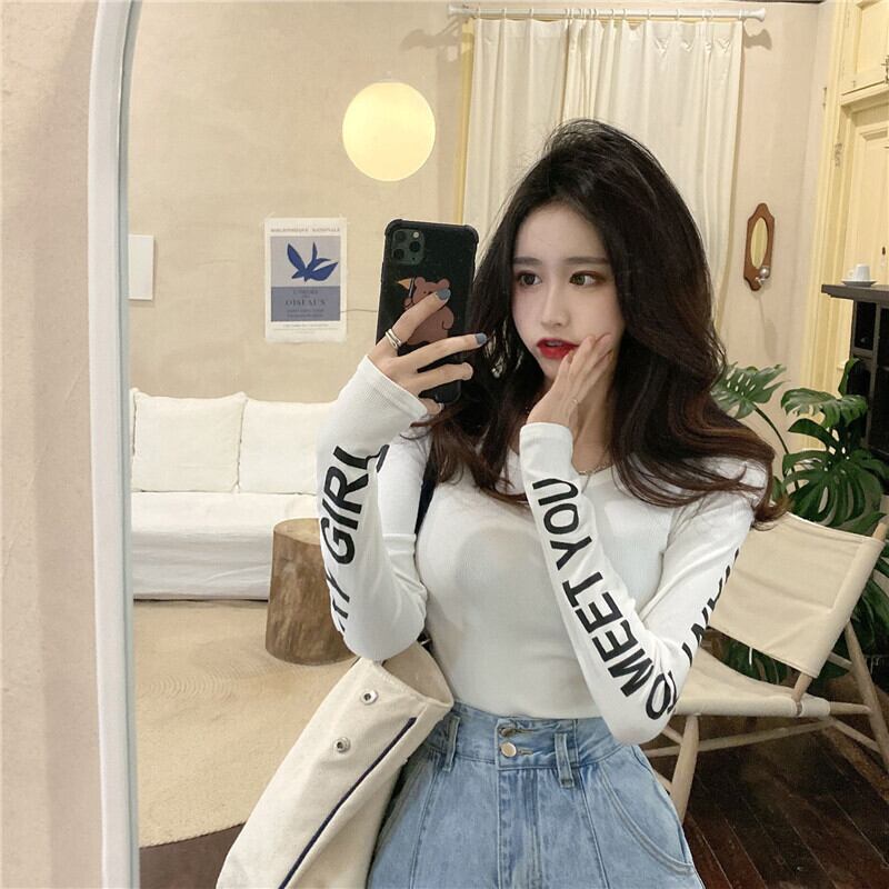 オータムシャツ プリントTシャツ スリムトップス ロング 秋物 ヨーロピアン Xiaofeijia79559834091