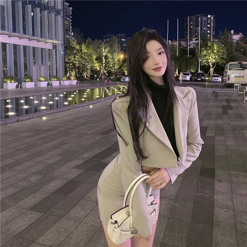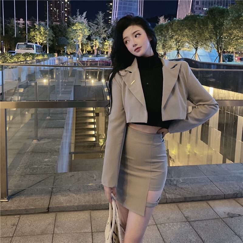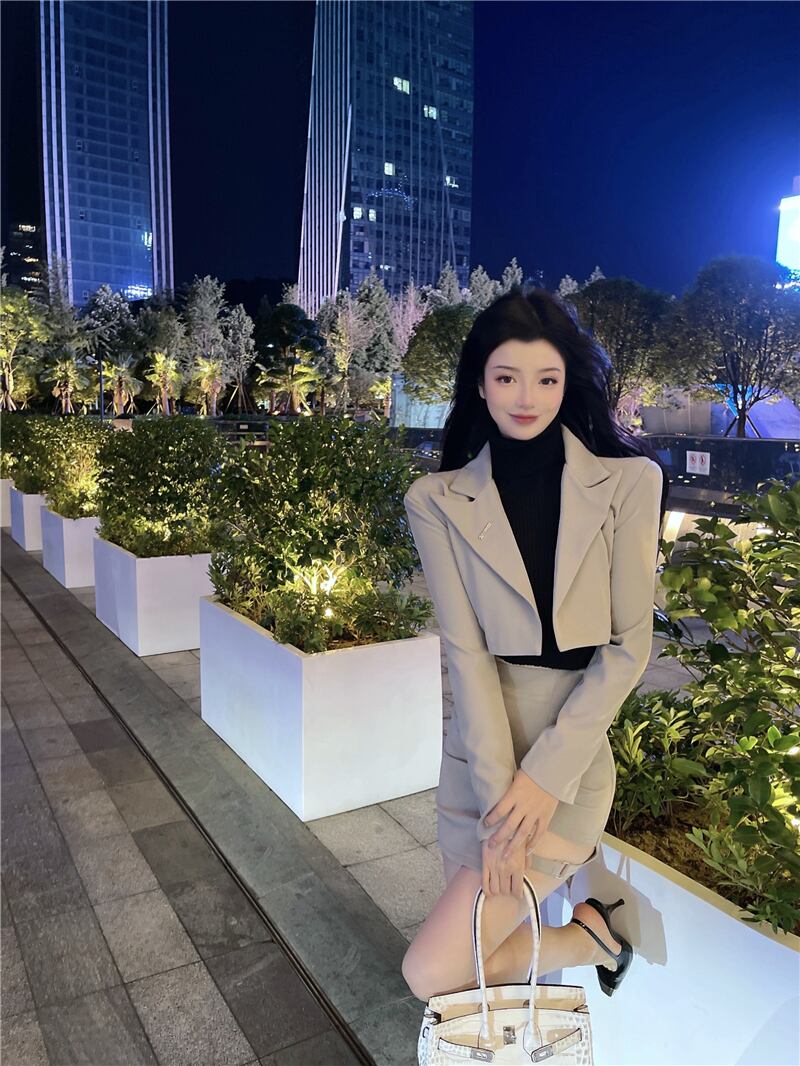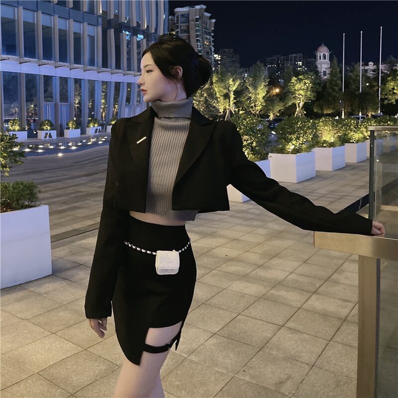 ショートジャケット カラーニットハイウェストウェストスカート Xiaofeijia90425067930