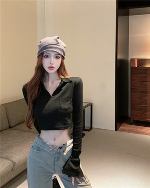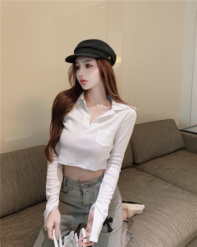 ベーシックカラールーズ薄手ニットTシャツ 長袖スリーブトップス ロング ピュア Xiaofeijia81313255817