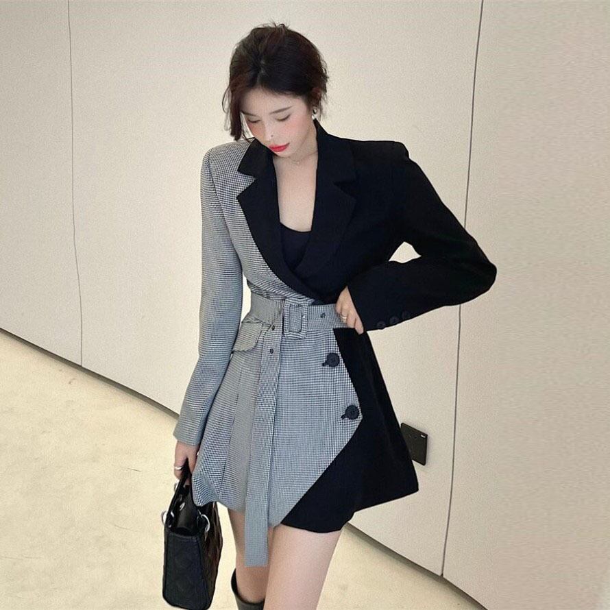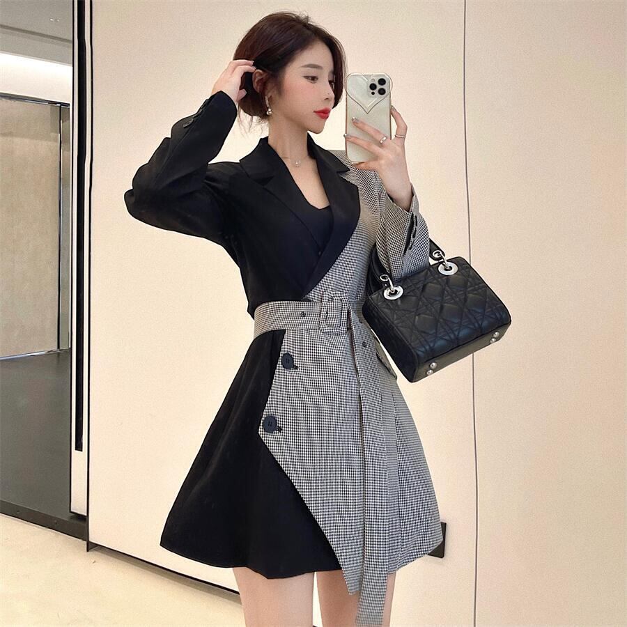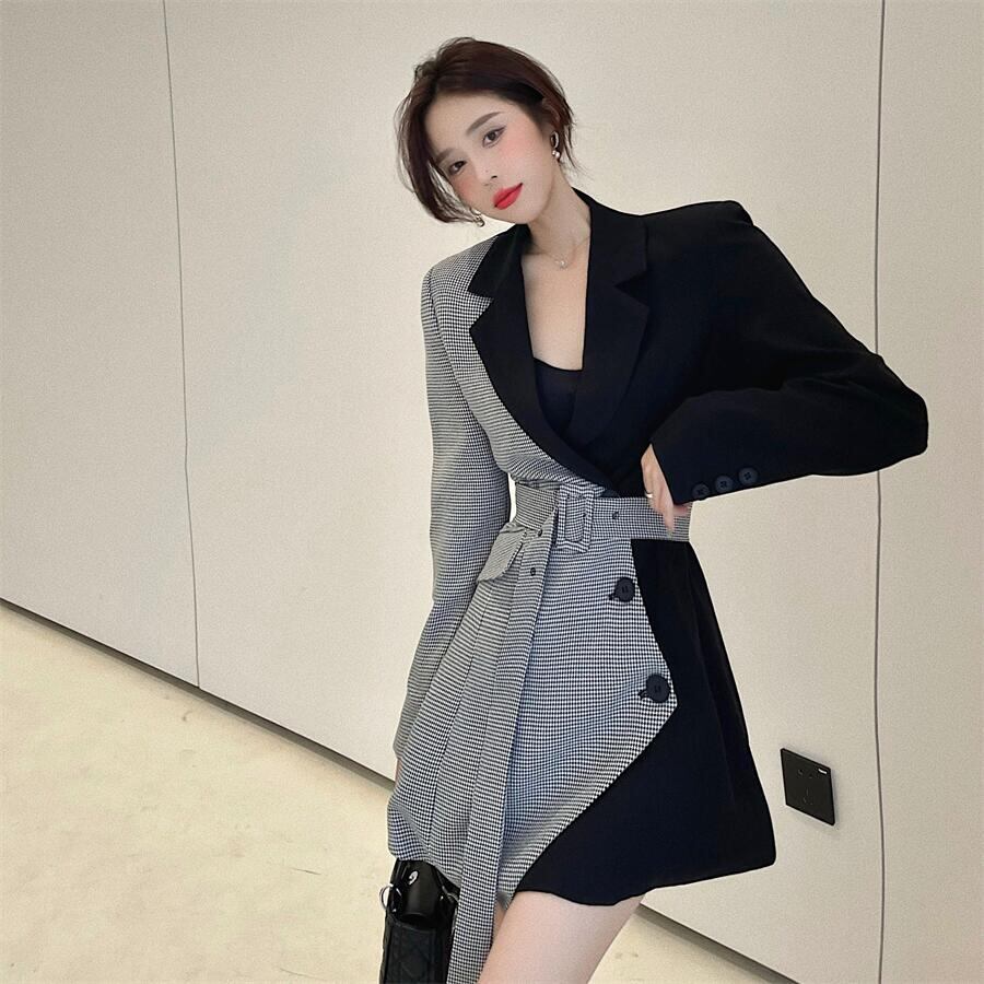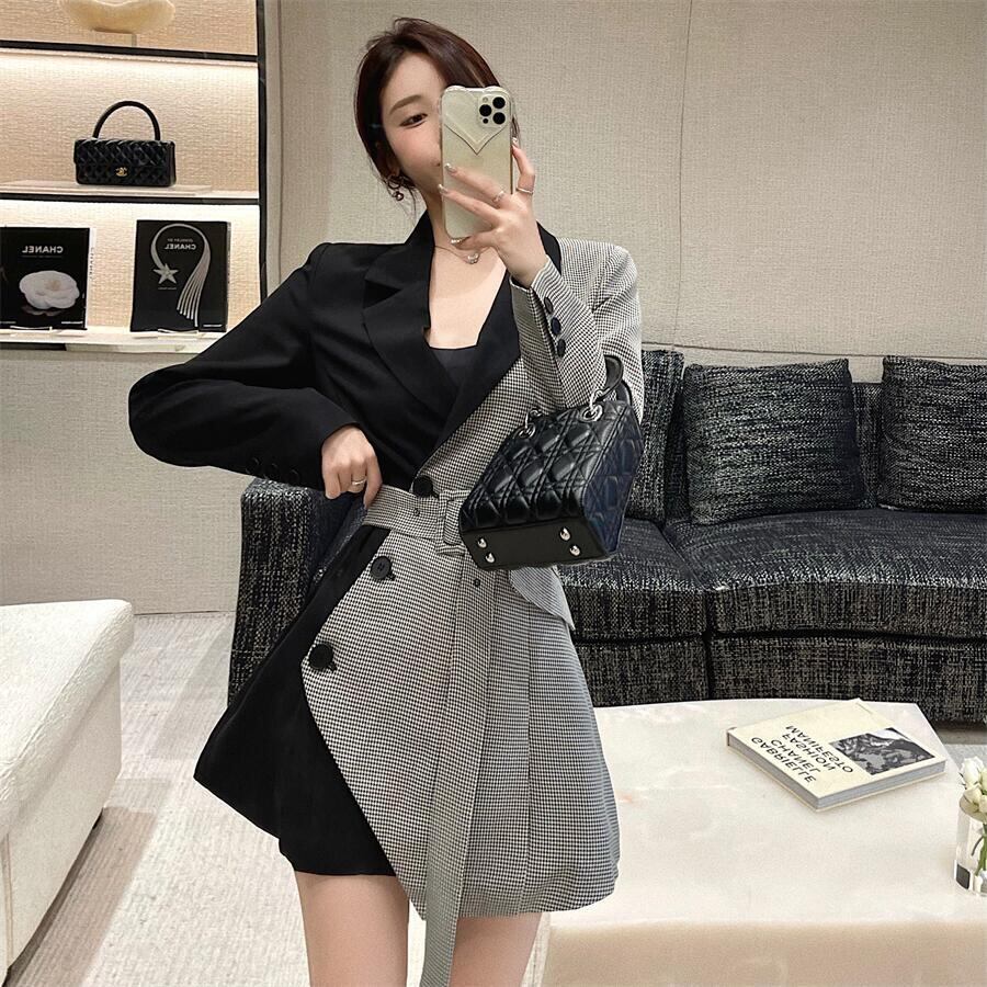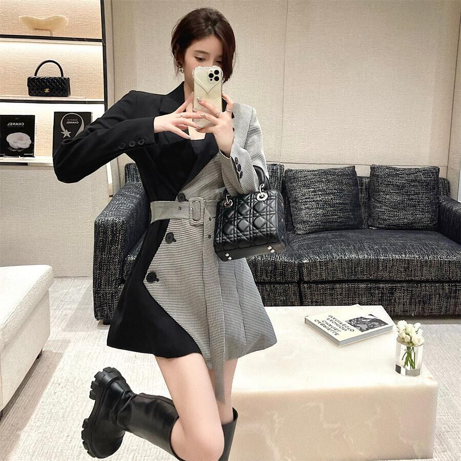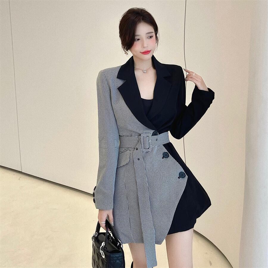 格子柄ベルト ウェストドレス ハーネス ステッチ Xiaofeijia60500344454