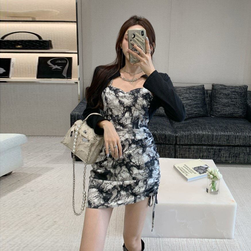 ギャザースカート スリムニットオータムドレス ロング 秋物 Xiaofeijia38699994977