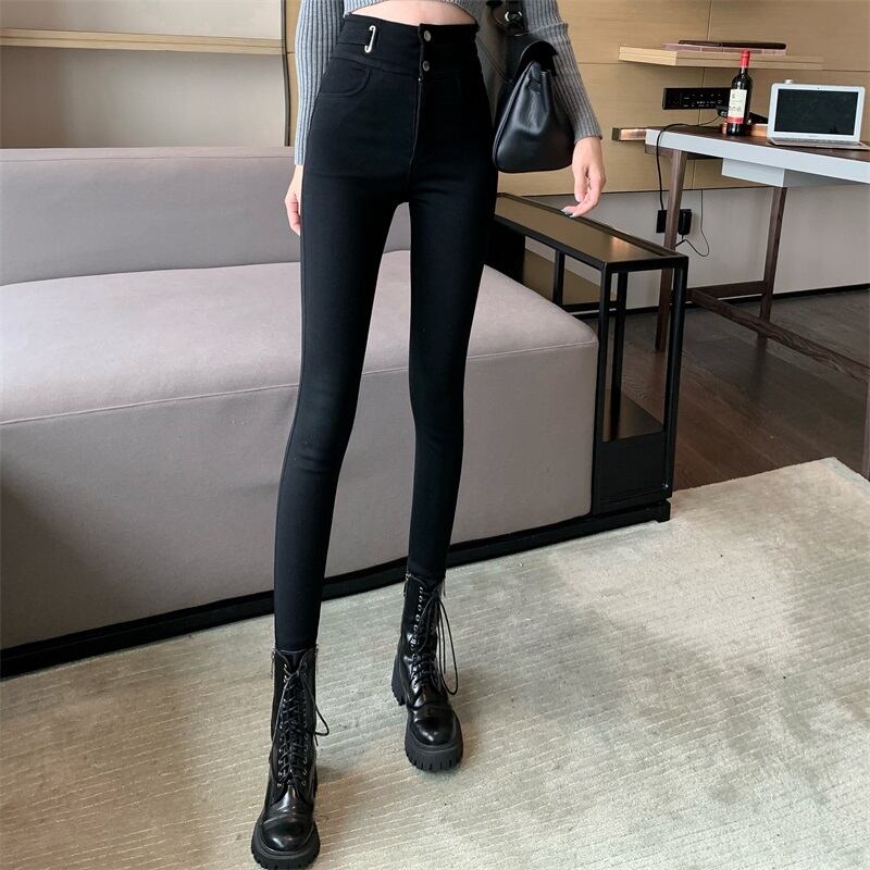 スプリングオータムスタイルハイウェストウェストパンツ ブラックレギンス 春物 秋物 Xiaofeijia24319324174