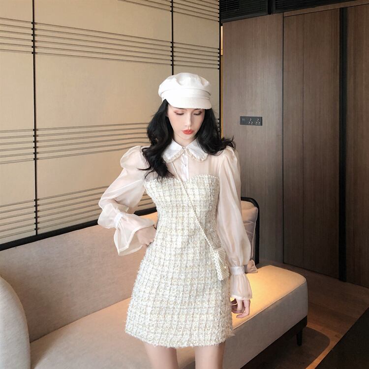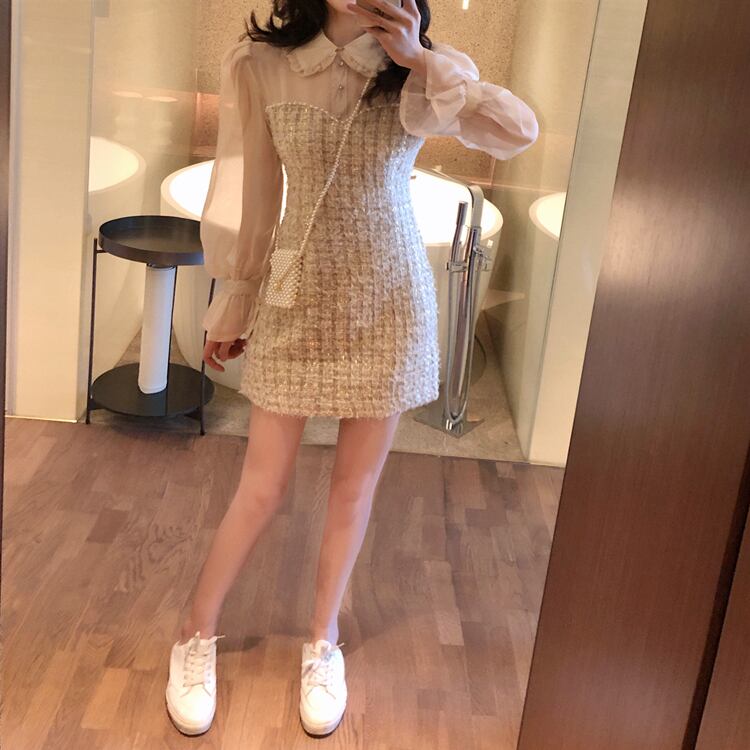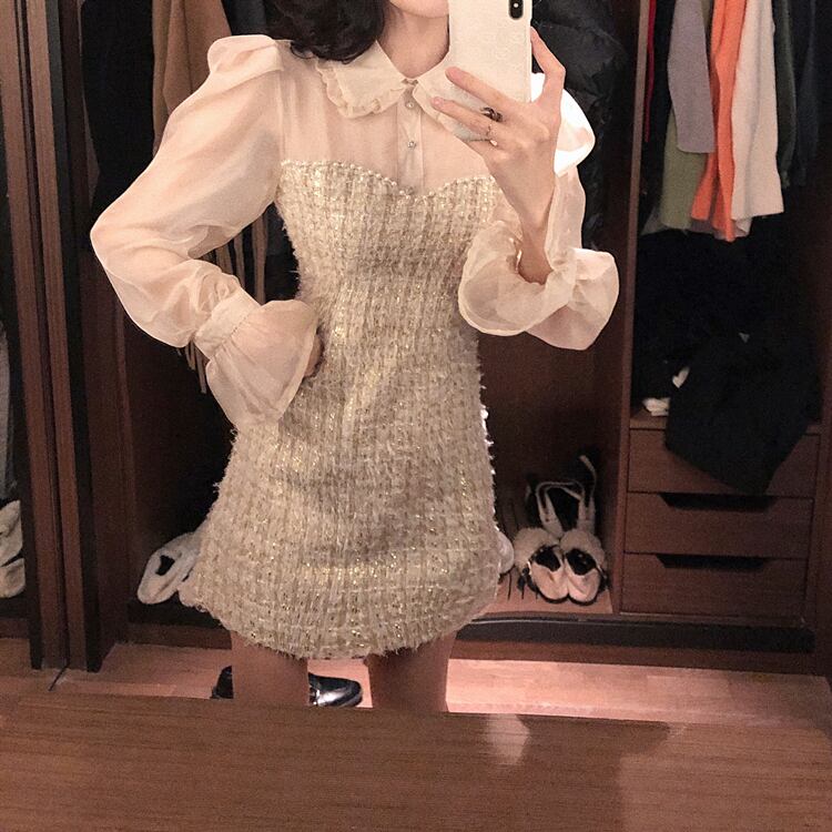 ツィードカラードレス ステッチ Xiaofeijia74817019406