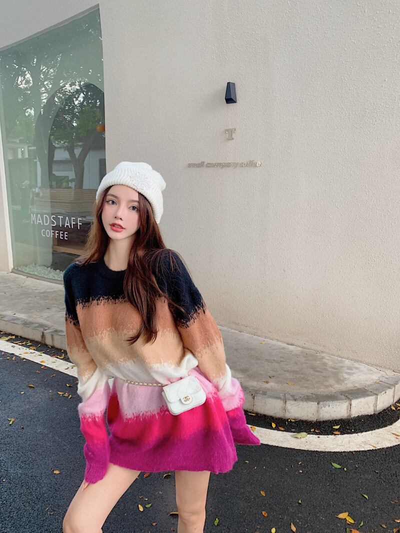 オータムウィンタールーズ薄手ストライプセーター 秋物 冬物 Xiaofeijia94471257681