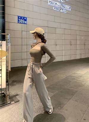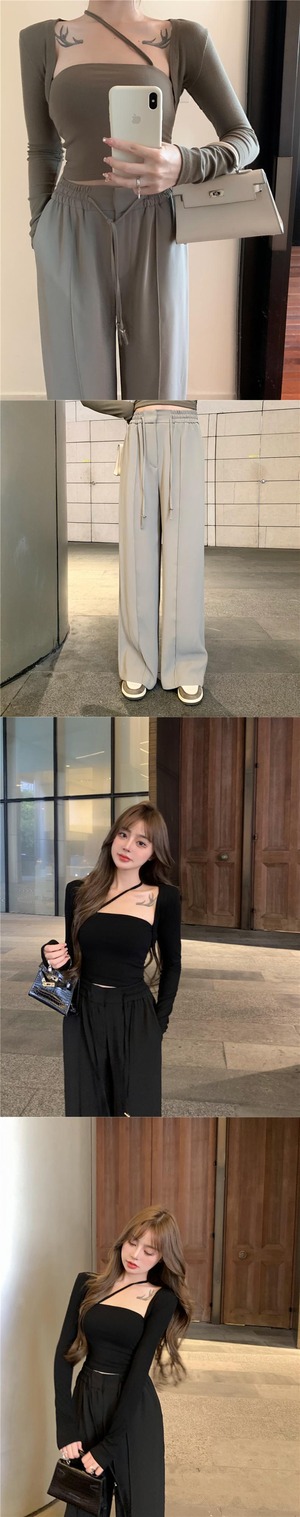 ストレッチハイウェスト薄手パンツ カジュアルオータムルーズロング レース エラスティック 伸縮 秋物 レースアップ Xiaofeijia13275845625