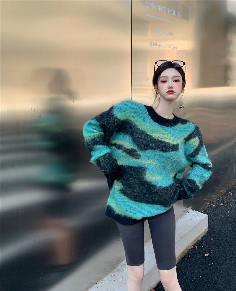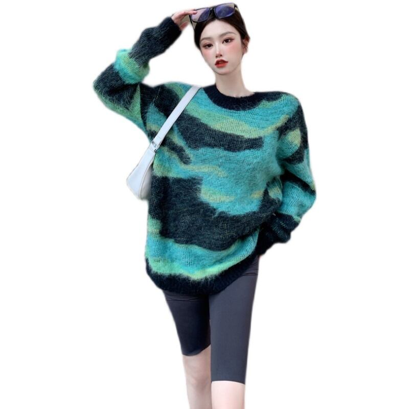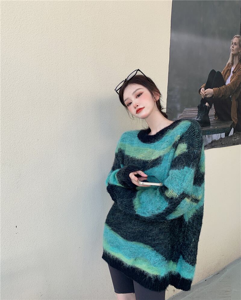 セーター ジャケット レディースルーズ薄手Vネックストライププルオーバー ニット Xiaofeijia75038210461