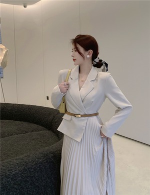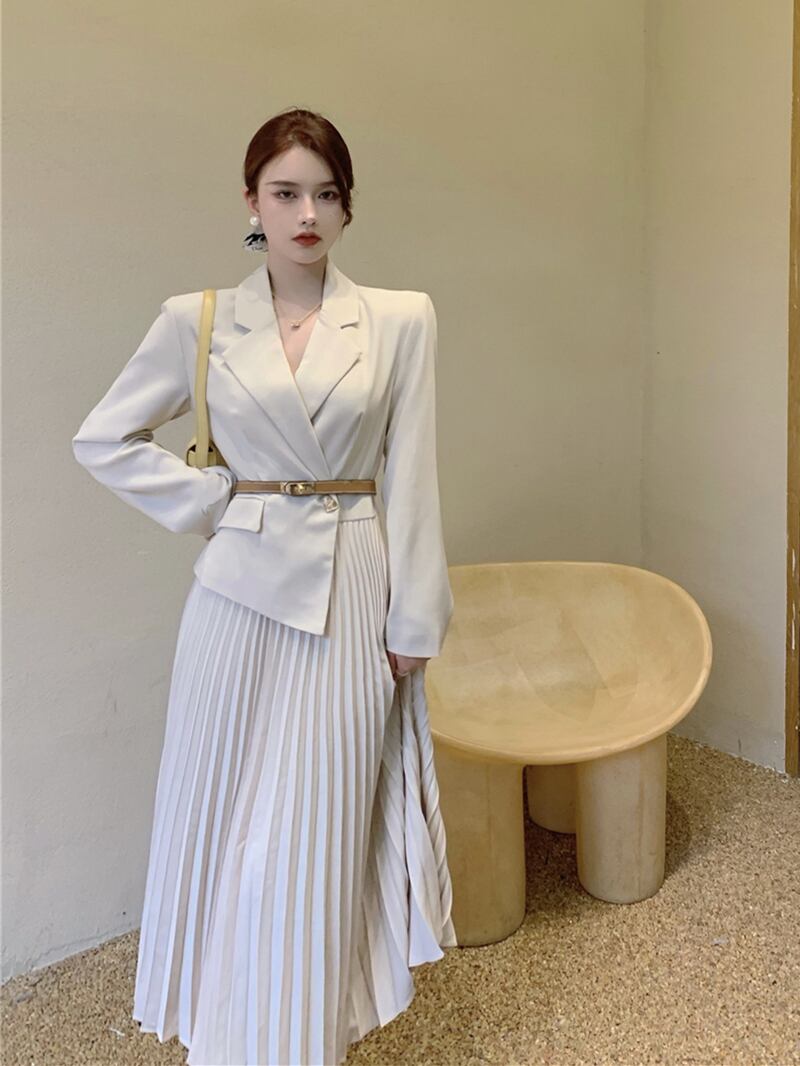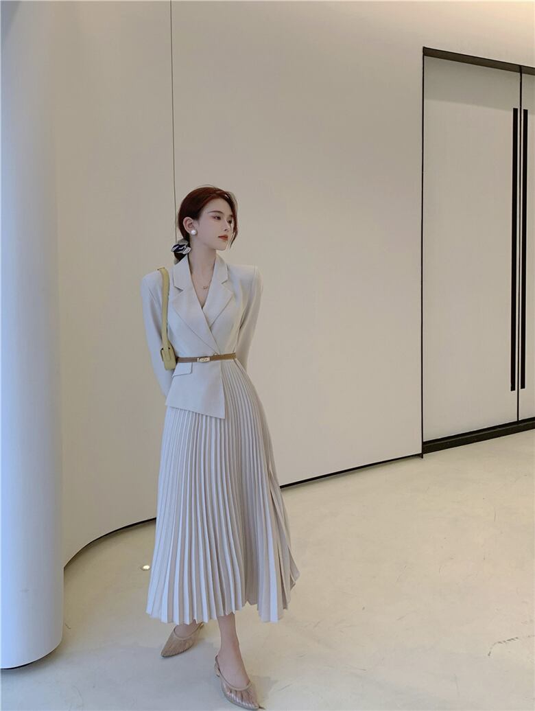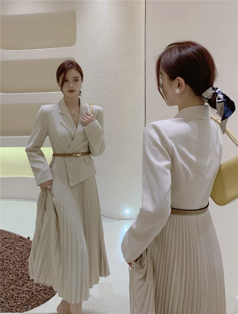 スカート オータム長袖スリーブウェストプリーツドレス レディース ロング 秋物 ステッチ Xiaofeijia23561355303