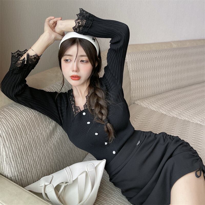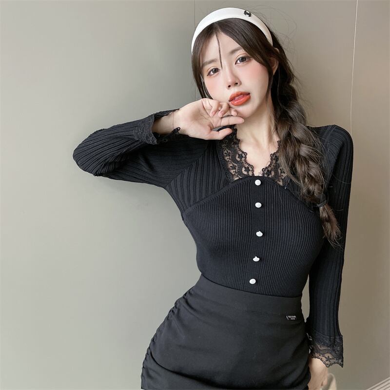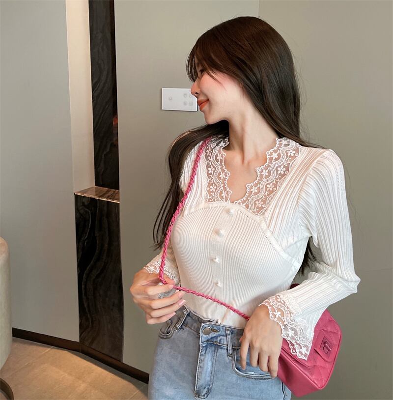 レースVネックニット トップス シャツ ステッチ Xiaofeijia48764591509