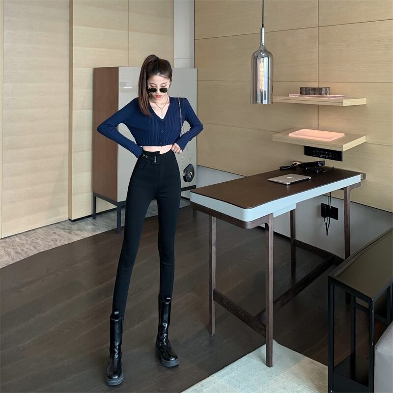 オータムスリムハイウェストブラックパンツ 秋物 Xiaofeijia16652244761