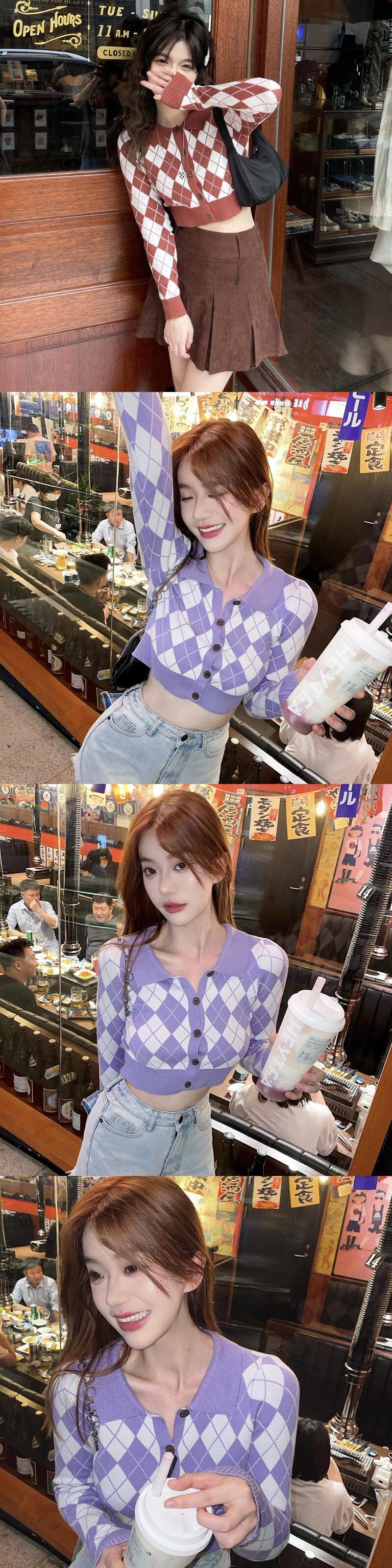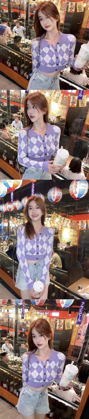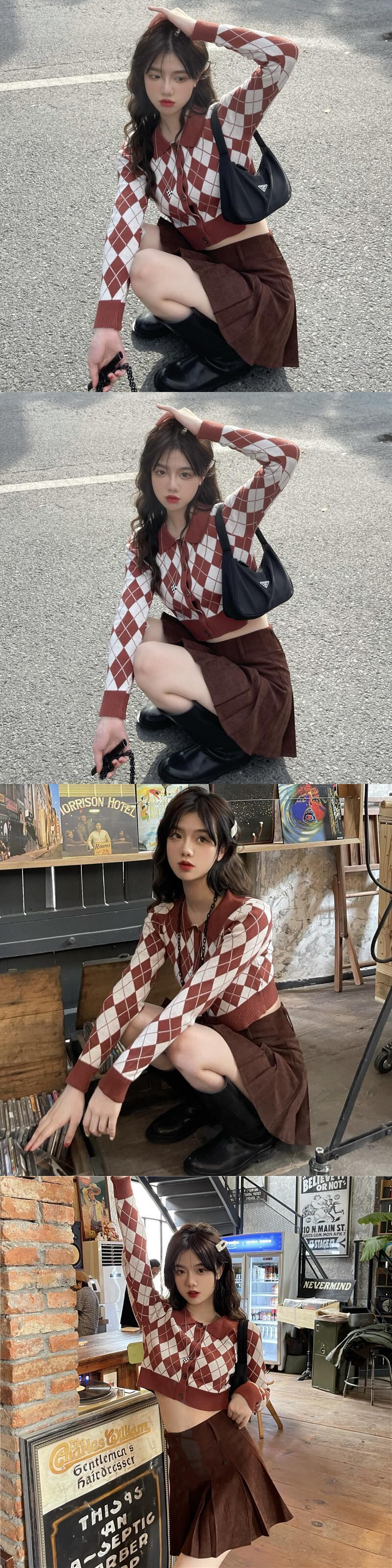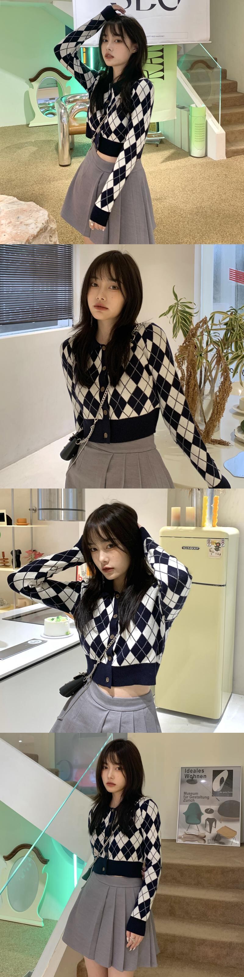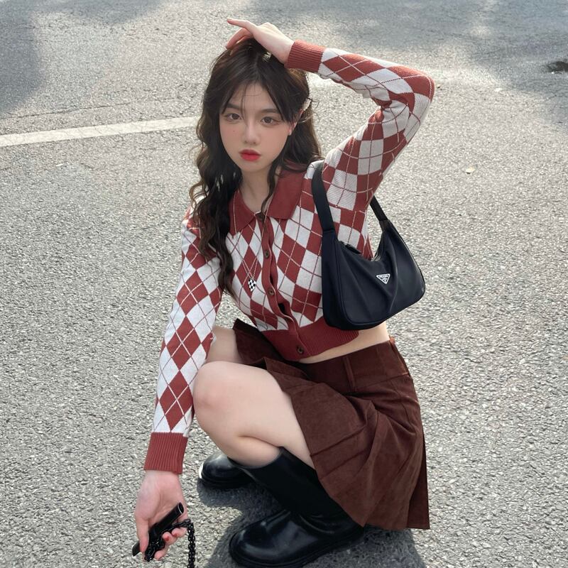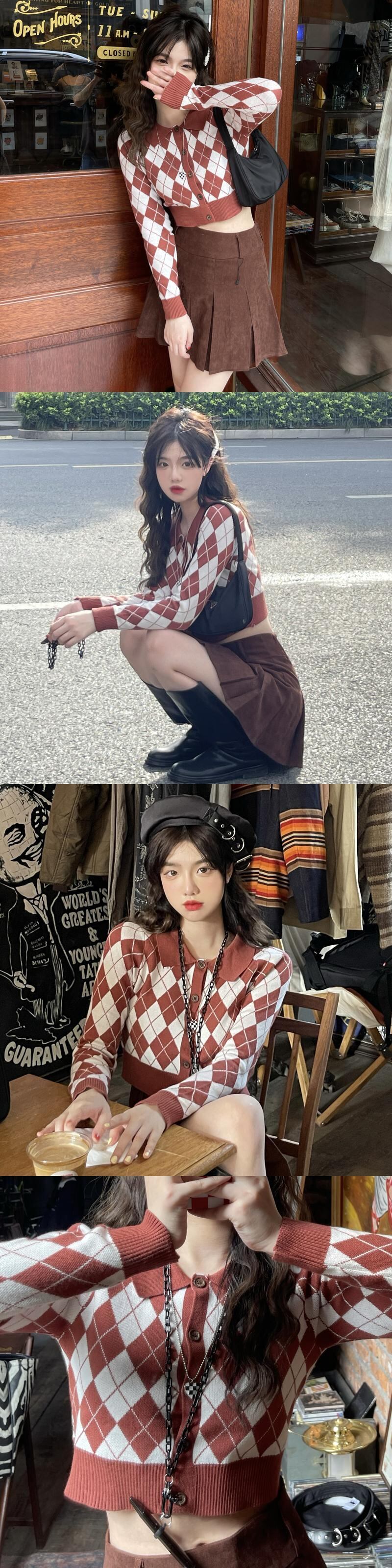 オータムスタンダードスタイルカラーショートニットセーター カーディガントップス レトロ 秋物 Xiaofeijia26809524259